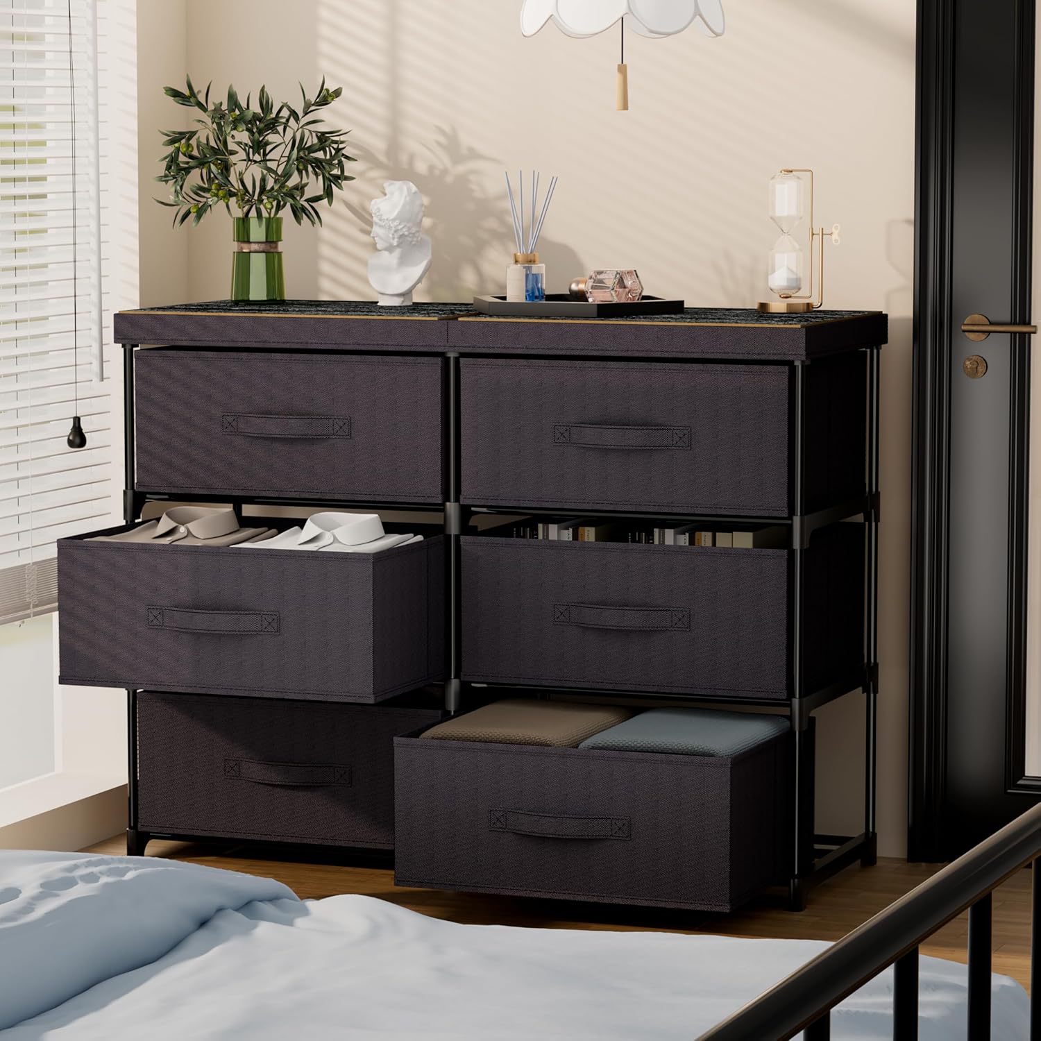 Dresser with 6 Fabric Drawer Stand Desktop Sturdy Metal Plastic Support Tube Cube Storage Cabinet for Bedroom Organization Dorm Front Hall Entryway