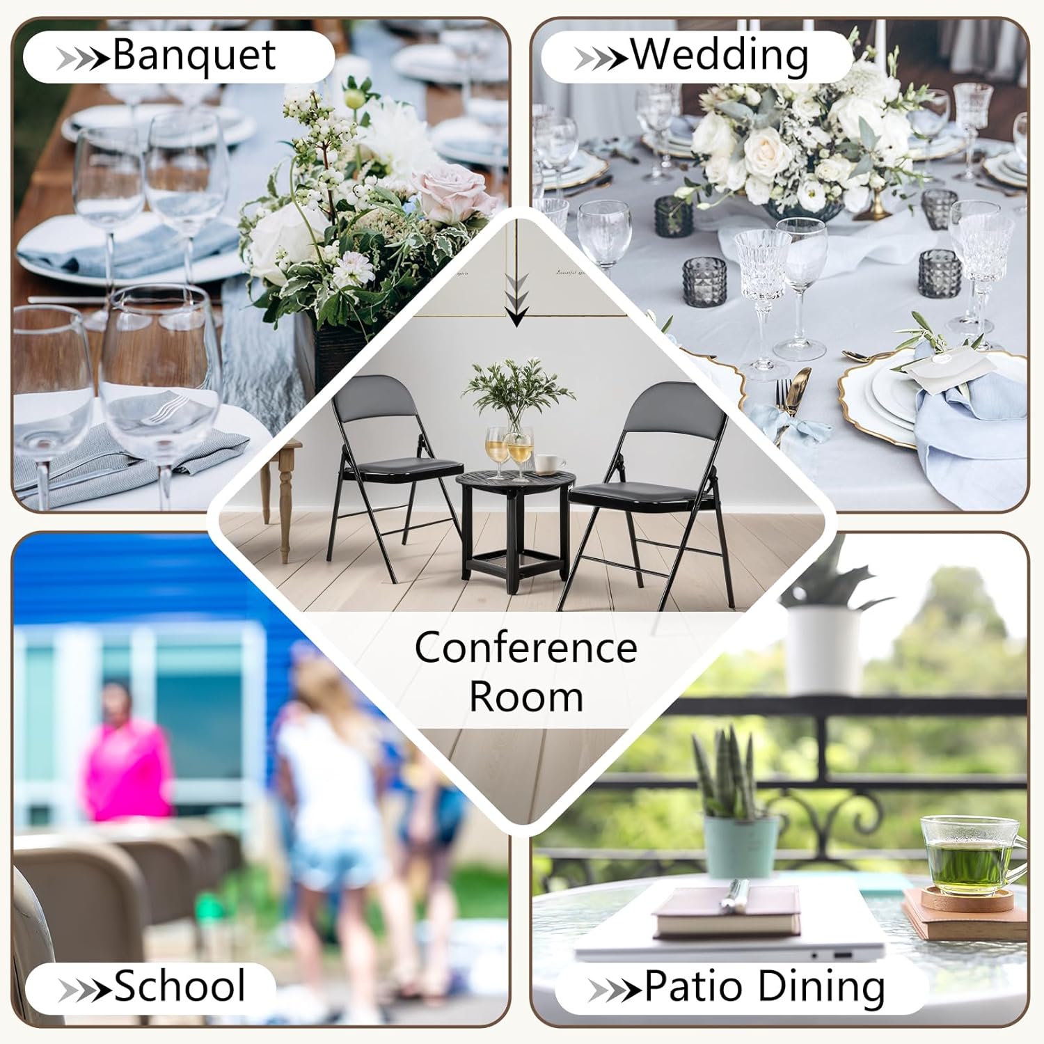 EXCELLENT COMFORT- The backrest and seat cushion of the folding chair are padded with high-density foam to provide superior comfort for you or your guests. The high quality polyurethane leather used is great to touch, comfortable to sit on, soft and cozy, durable and easy to maintain.