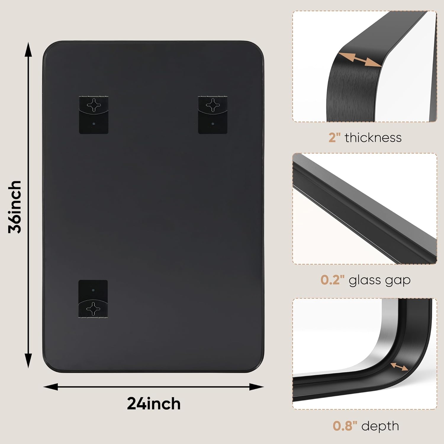 DUMOS Black Metal Framed Vanity Rounded Rectangle Bathroom Mirrors for Over Sink Wall, 36×24 Inch Large Matte Mirror, Modern Decorative for Restroom, Farmhouse, Horizontally or Vertically Hanging