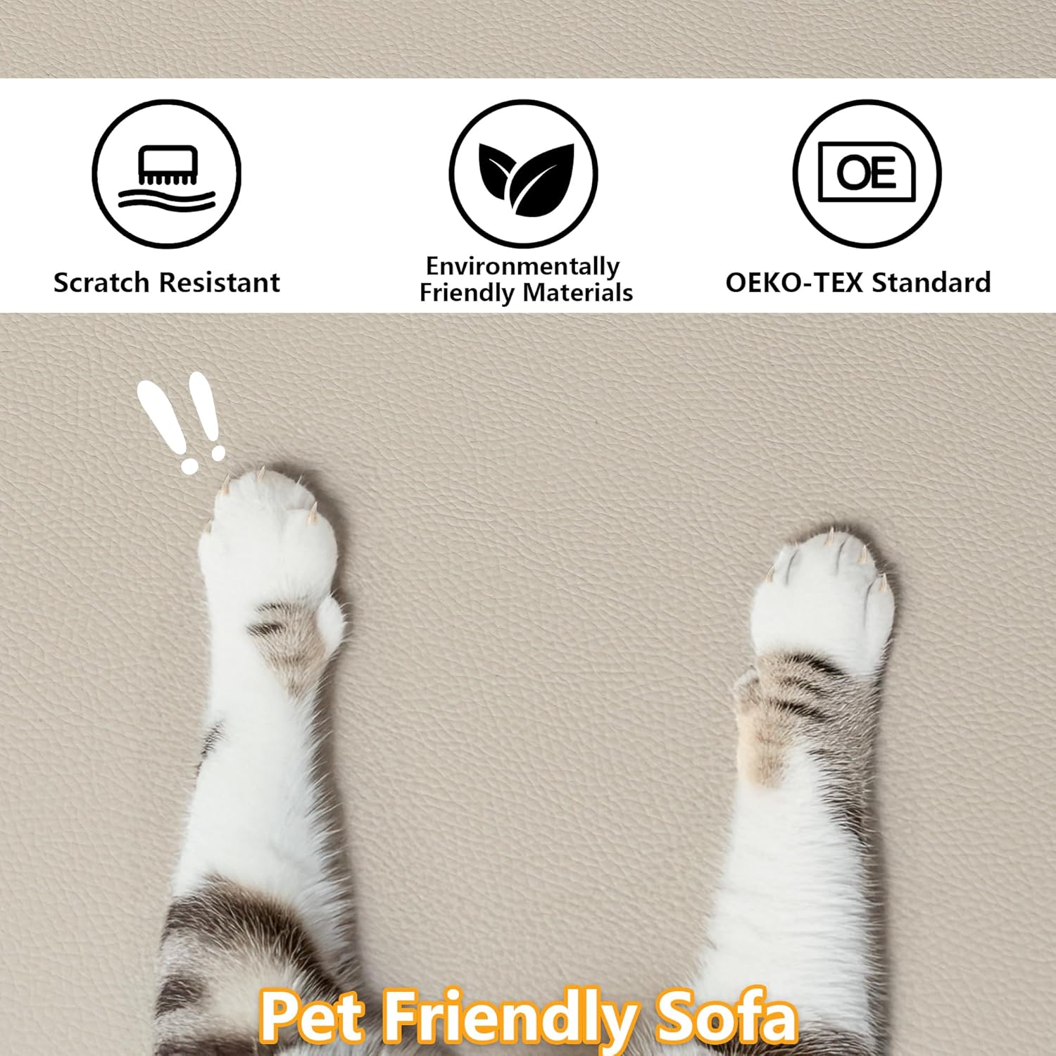 Pet Friendly Faux Leather Material: This faux leather material is not only waterproof, but also has the most important feature of scratch resistance.After testing, if the claws of cats and dogs are not very sharp and do not scratch repeatedly, there will be no damage to the material, which is also very suitable for families with pets. In addition,this EASE MOOSE modular sectional sofa is made of environmentally friendly material and is OEKO-TEX standard certified, which is free of harmful substances such as formaldehyde.