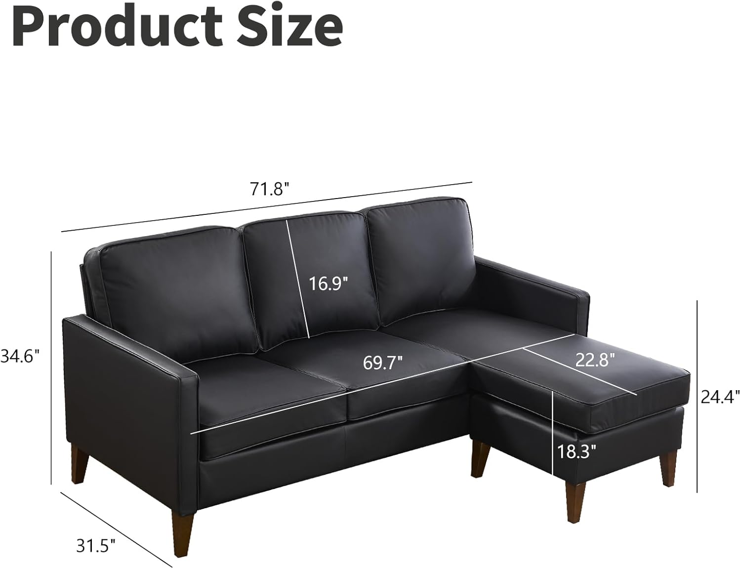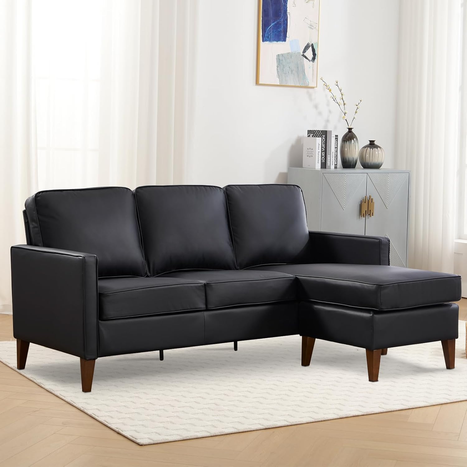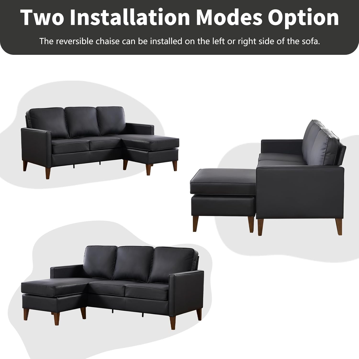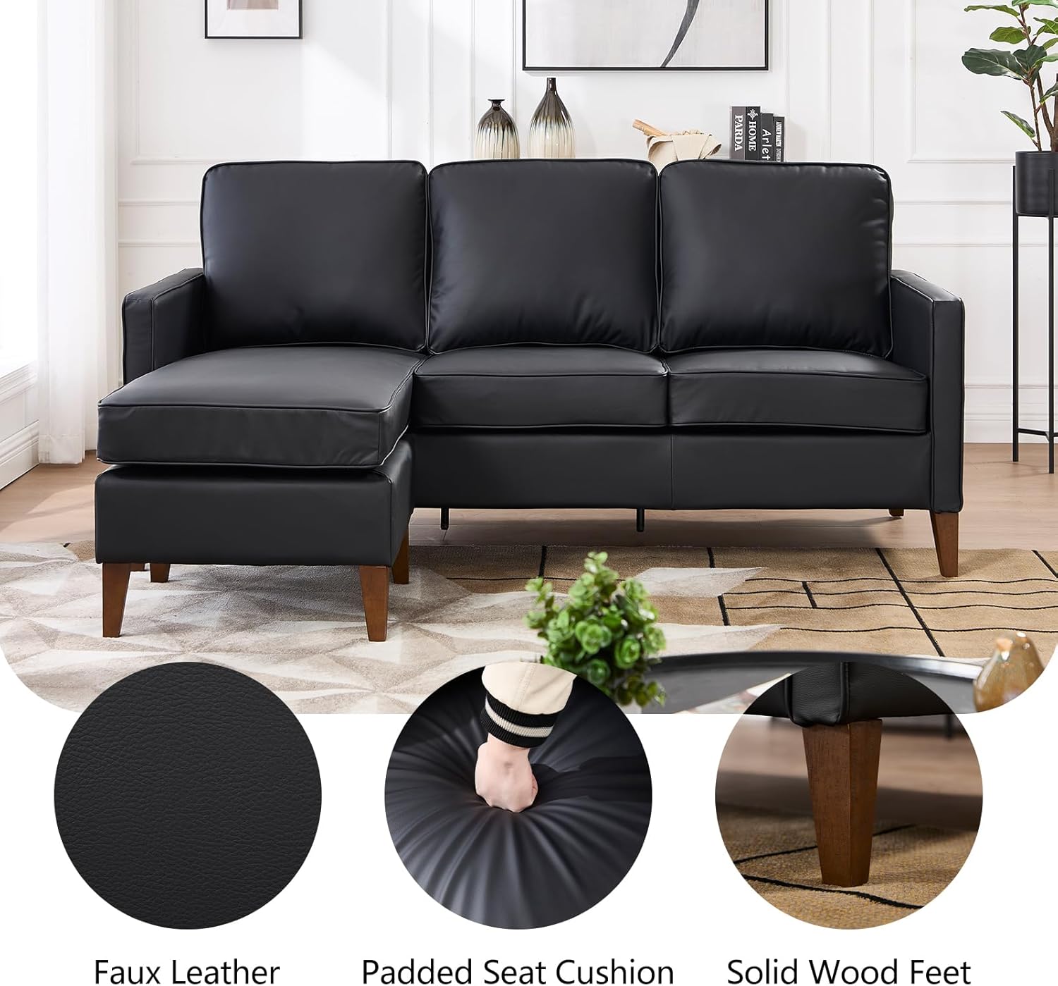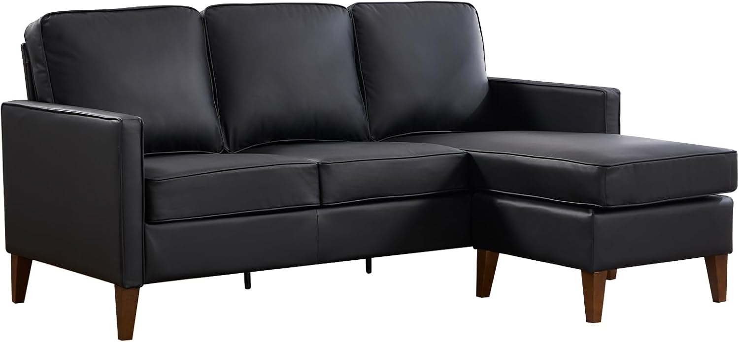 Premium Faux Leather Upholstery: The small sectional sofa for living room is upholstered in high-quality faux leather that offers a luxurious look and feel, is easy to clean, ensuring long-lasting durability.
