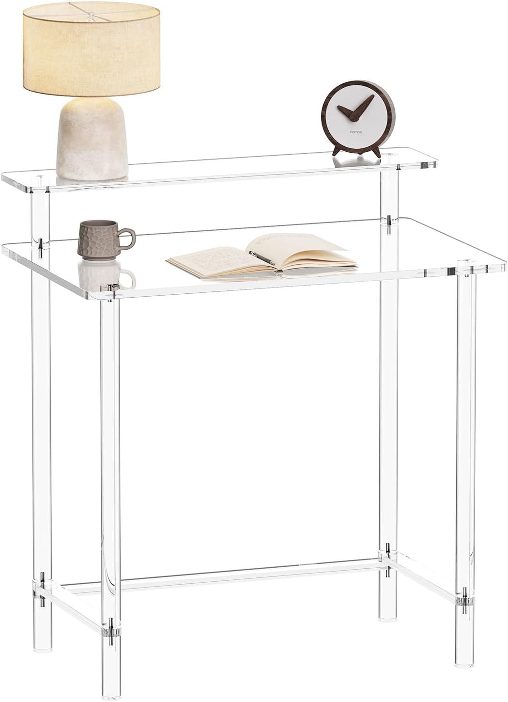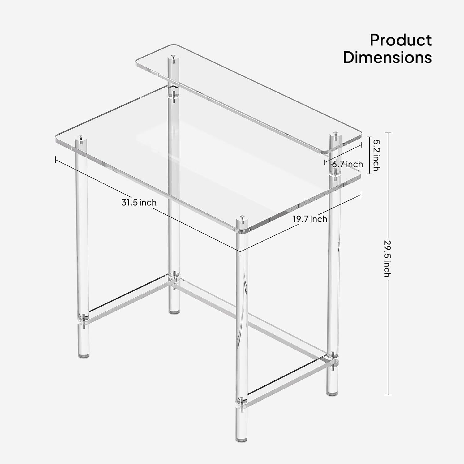 Eglaf Acrylic Desk – Home Office Desk with Monitor Stand – Modern Clear Desk Study Writing Table Computer Desk for Office, Living Room, Bedroom, 31.5″ L x 19.7”W x 34.7″ H