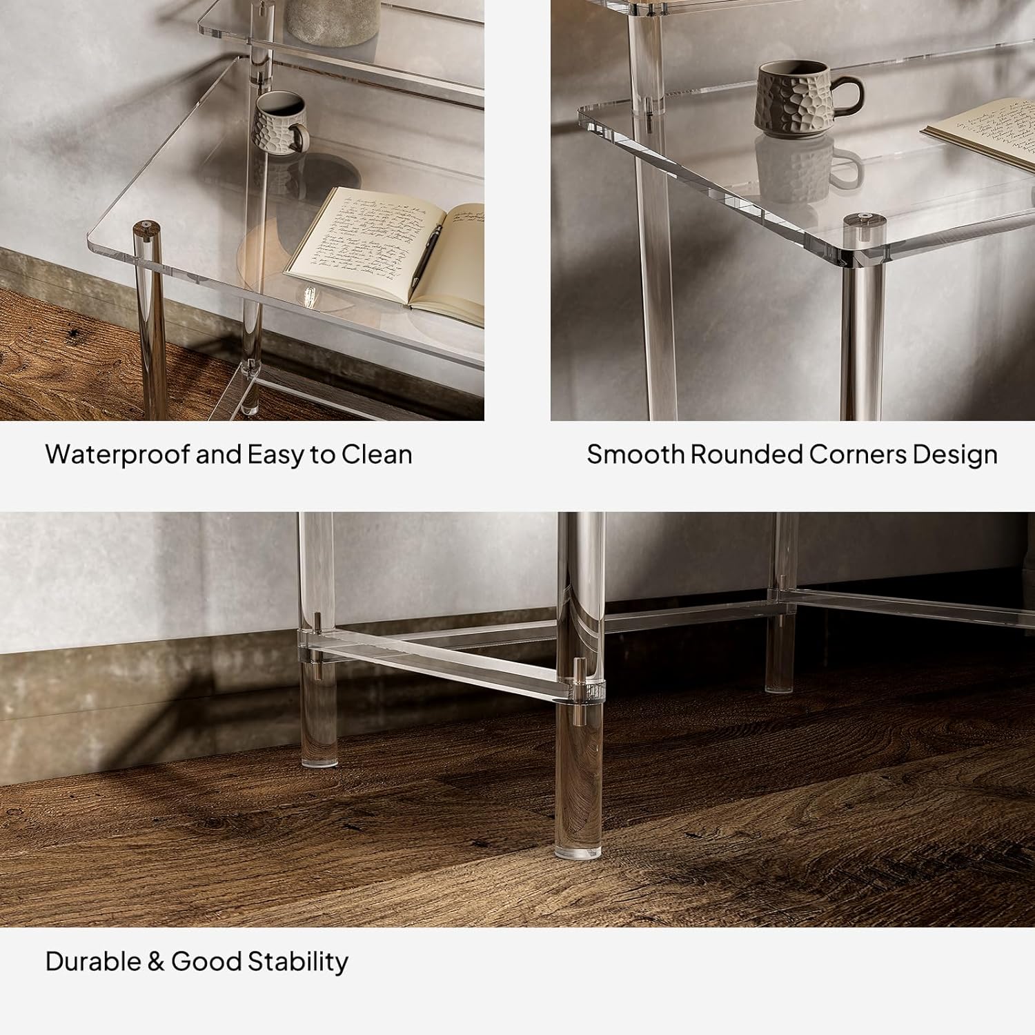 Versatile Acrylic Desk – Size of 31.5″ L x 19.7”W x 34.7″H, provides enough space for work and study. It can be used as a computer desk, writing desk, office desk, or study table, suitable for the home office, studio, living room, and bedroom.