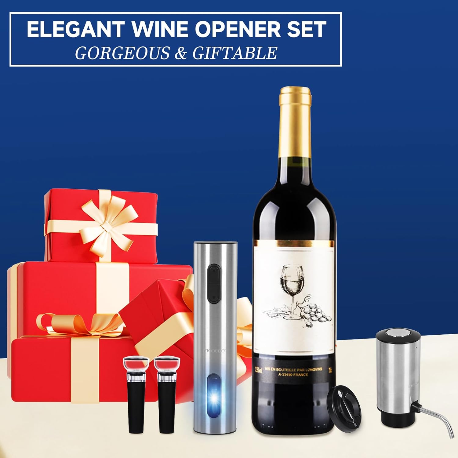 5-in-1 electric wine bottle opener set comes in a gorgeous box, making it a great gift for Mother’s Day, Father’s Day, Anniversary, Birthday, Housewarming, Thanksgiving, Party Host, White Elephant, Christmas, Hanukkah, etc.