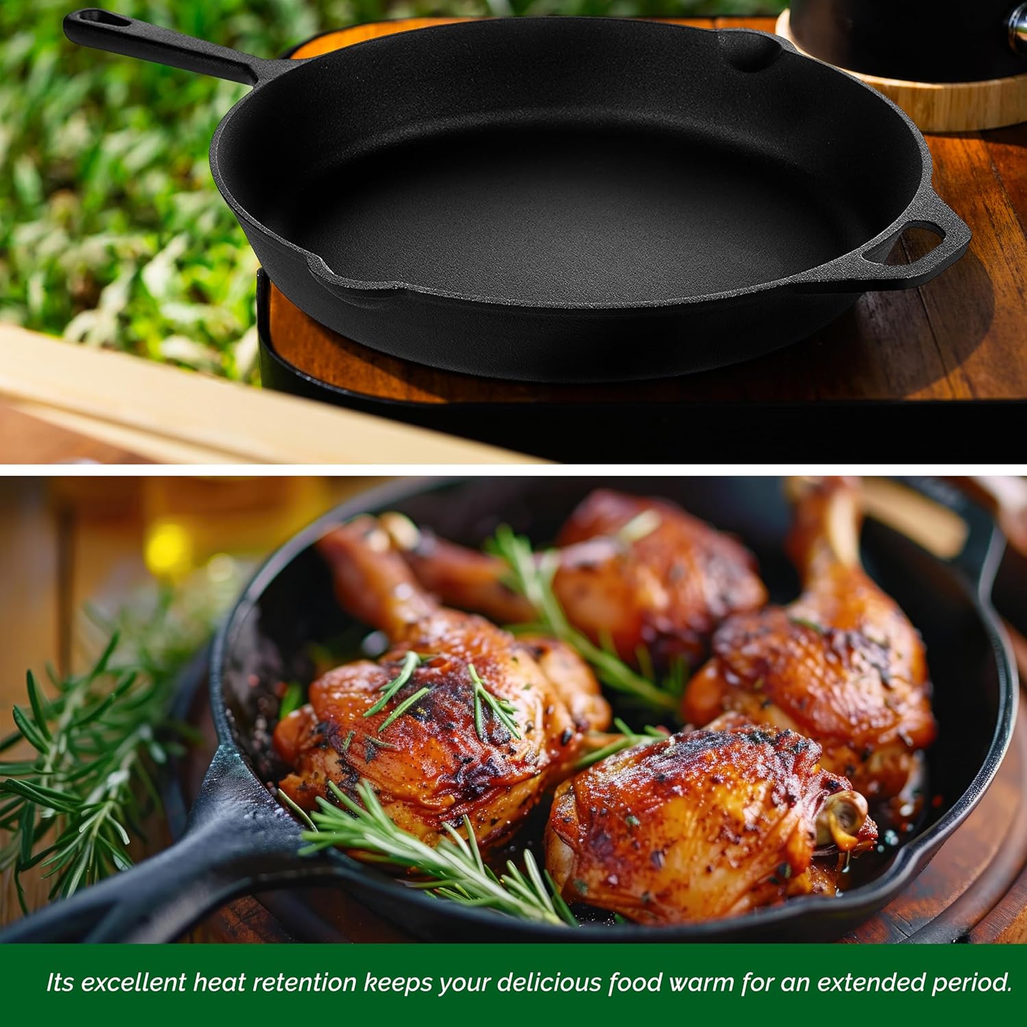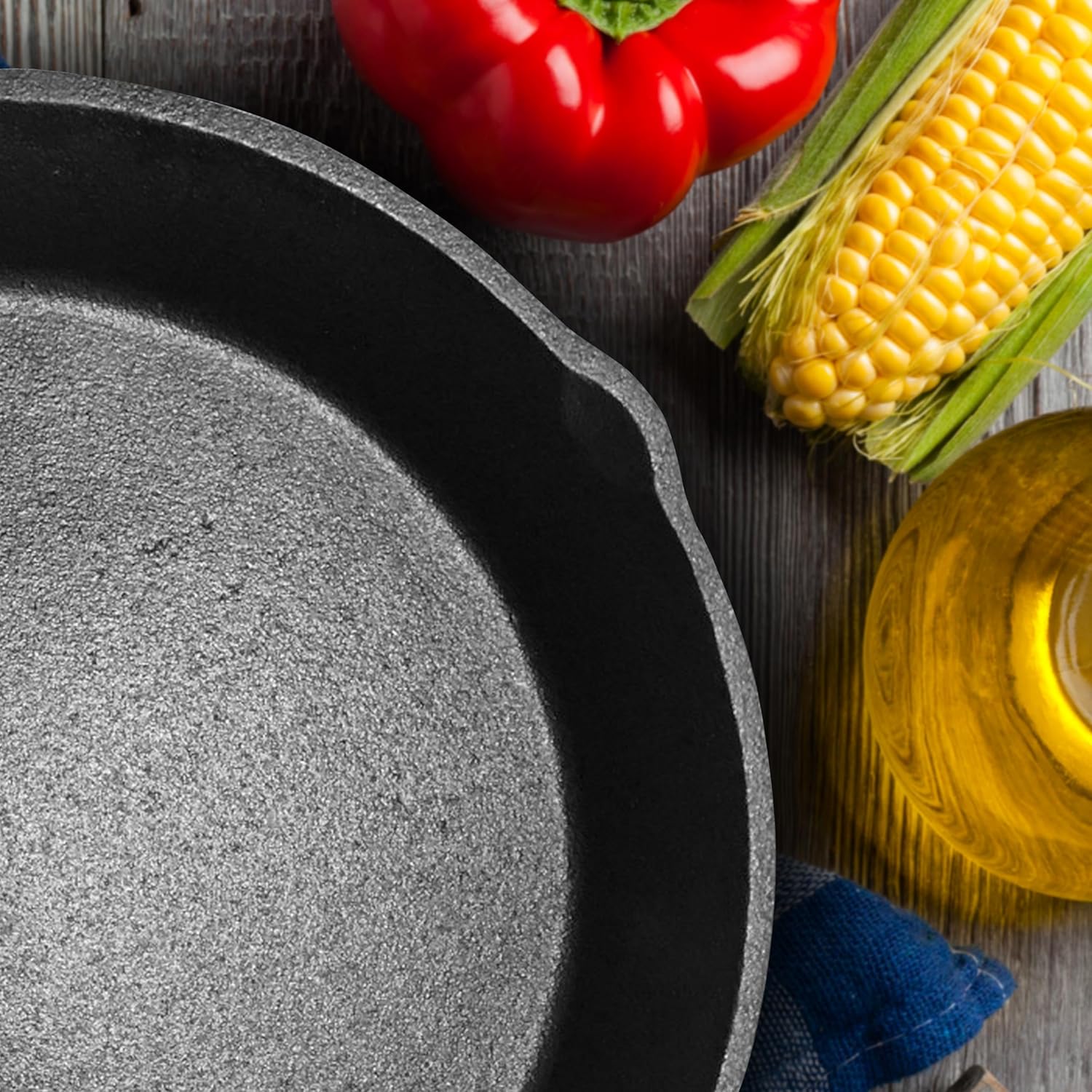 HEAT RETENTION AND DISTRIBUTION: Crafted from high-quality iron, our skillet pans provide superior heat retention and even distribution, ensuring perfectly cooked meals with consistent results every time.