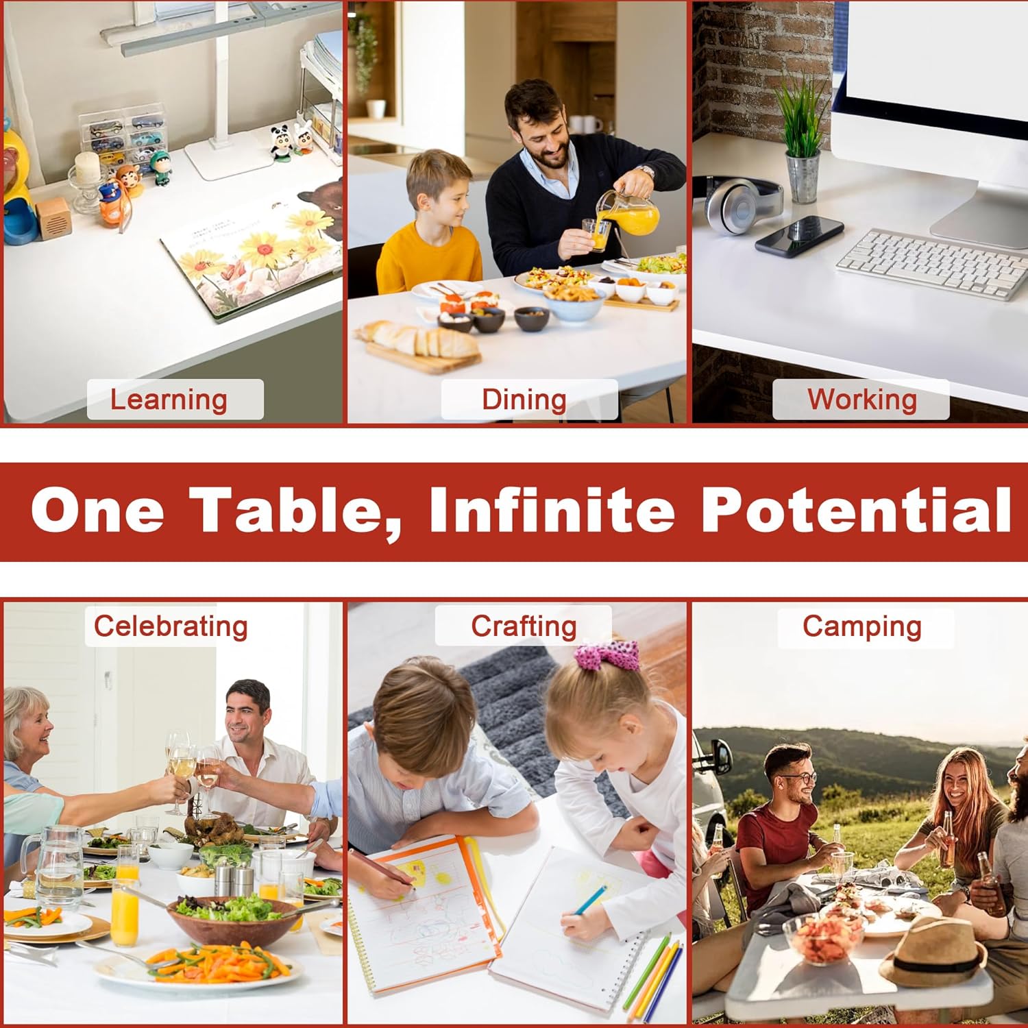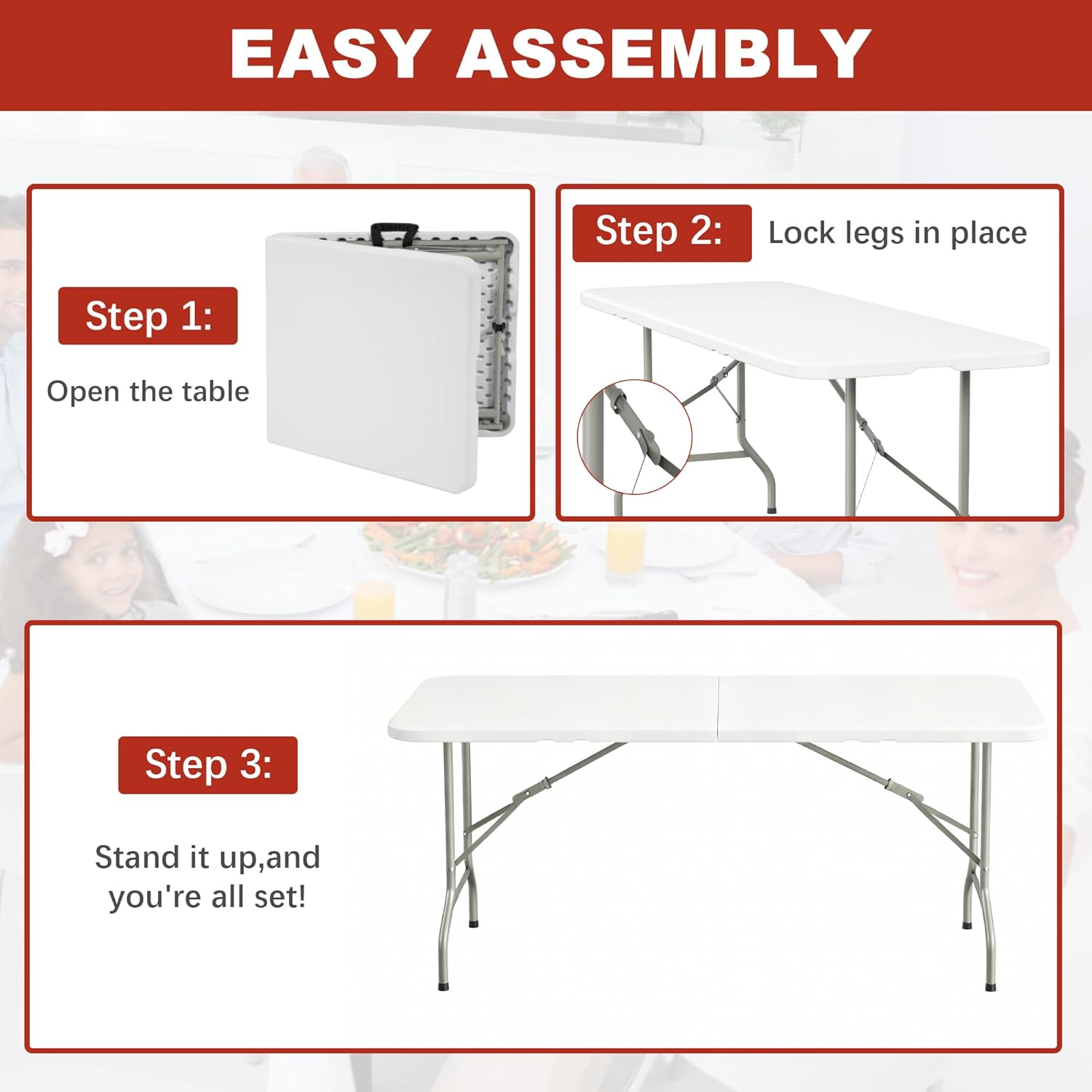 Folding Table for Small Spaces: Large 6FT table top easily seats 8 people. First choice for small apartments, holiday events or temporary guest seating