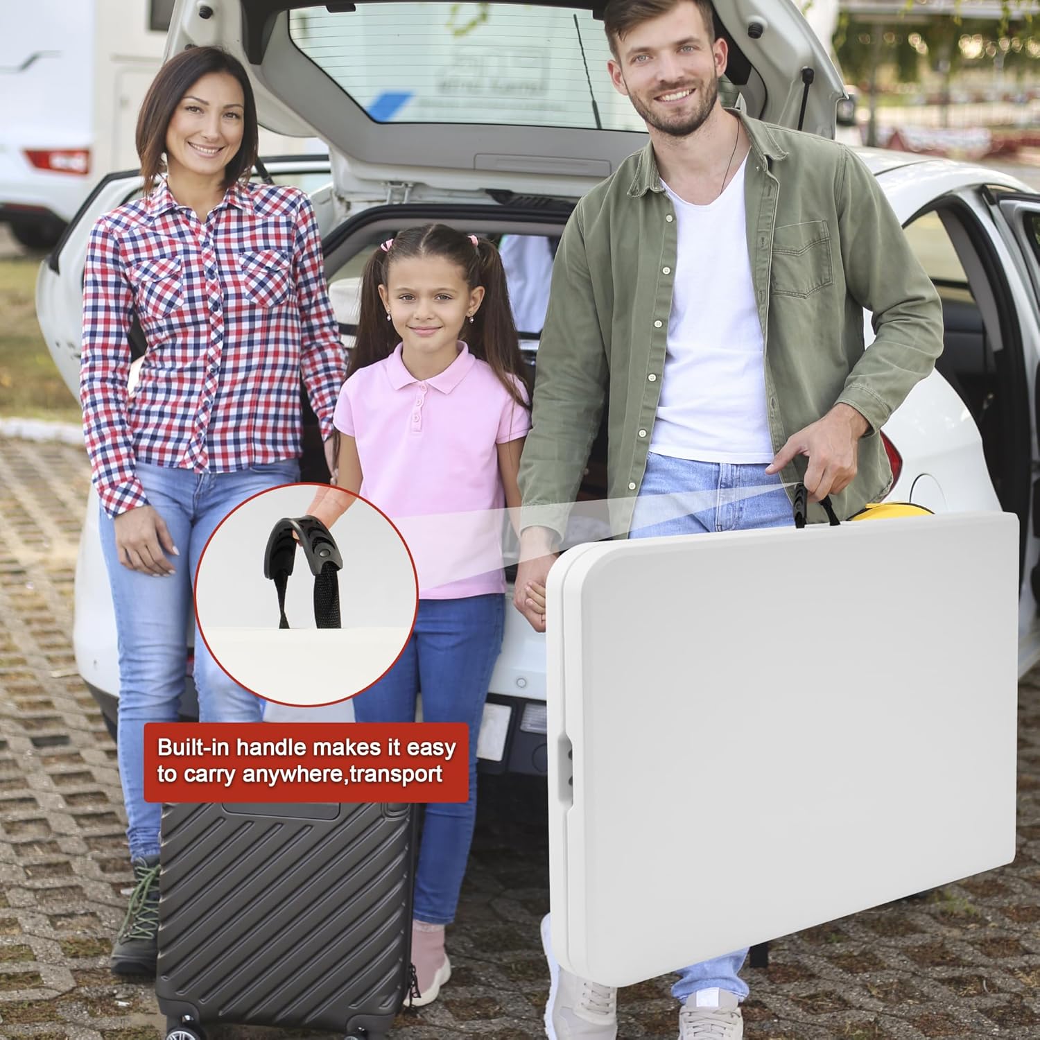 Foldable Design: Seamless folding locking mechanism and ergonomic handle make the foldable table easy to carry with one hand, ideal for outdoor adventures, tailgate parties or instant indoor setups