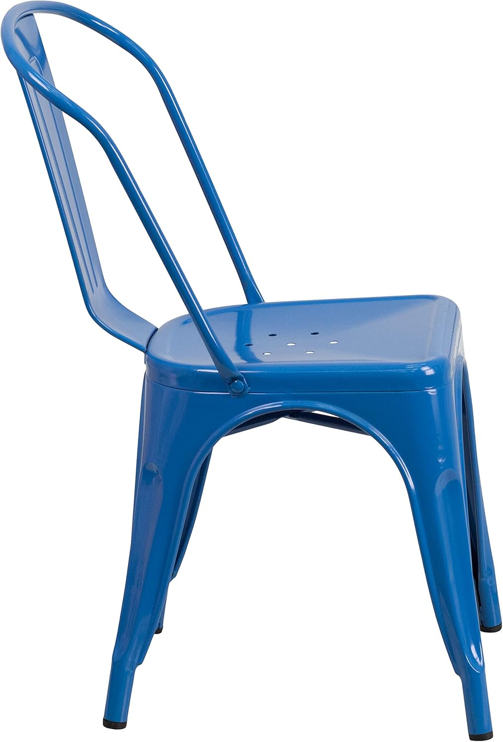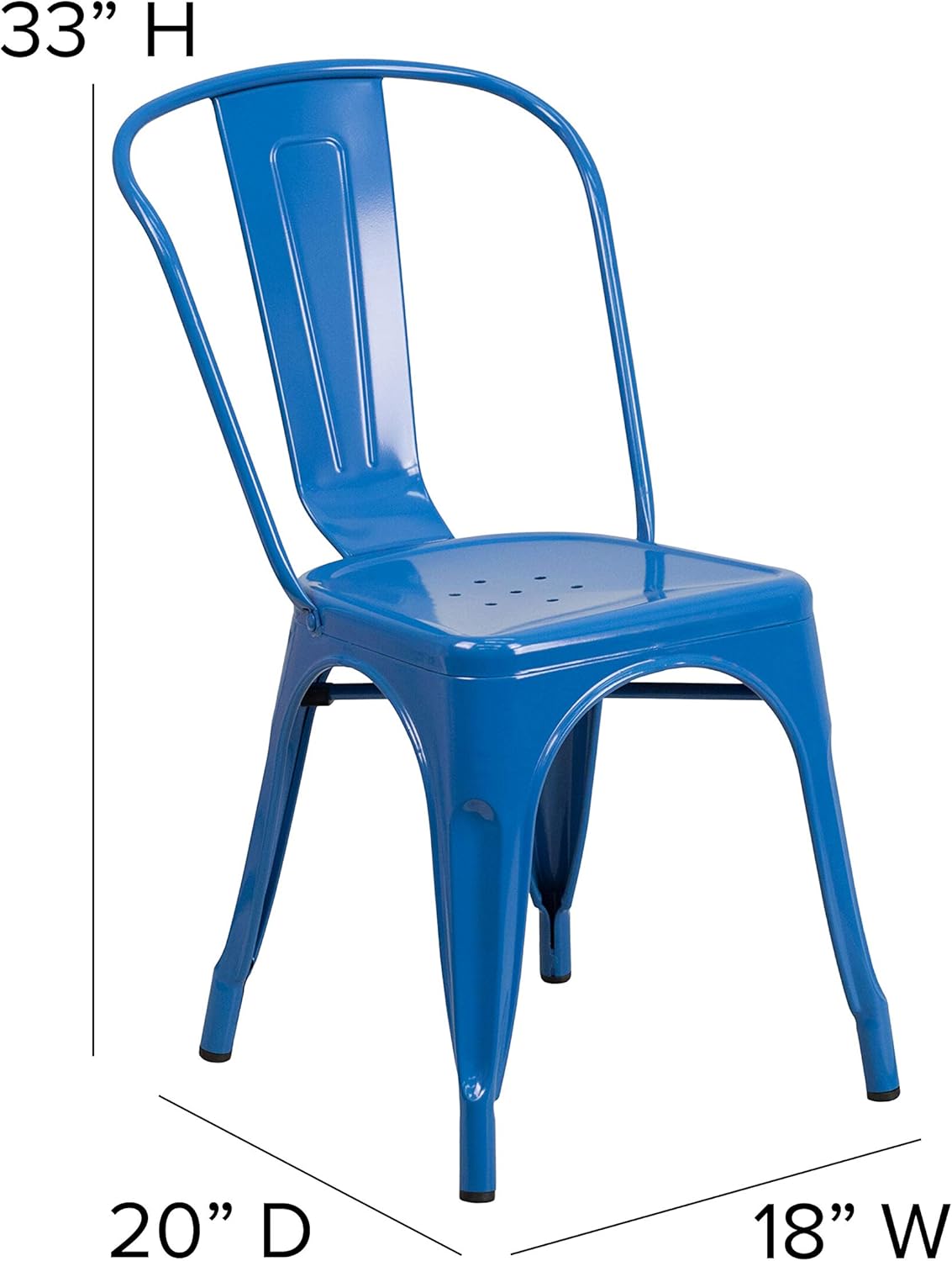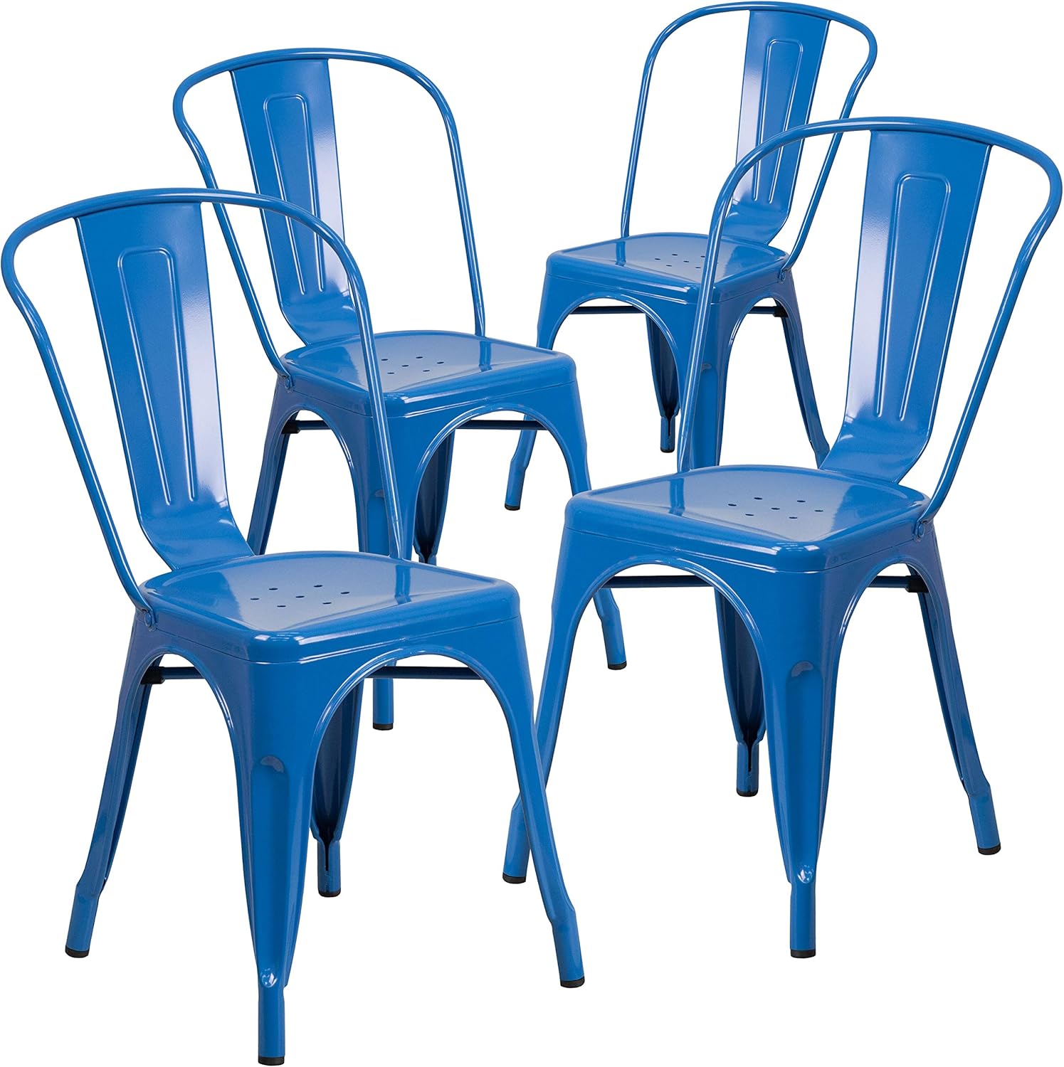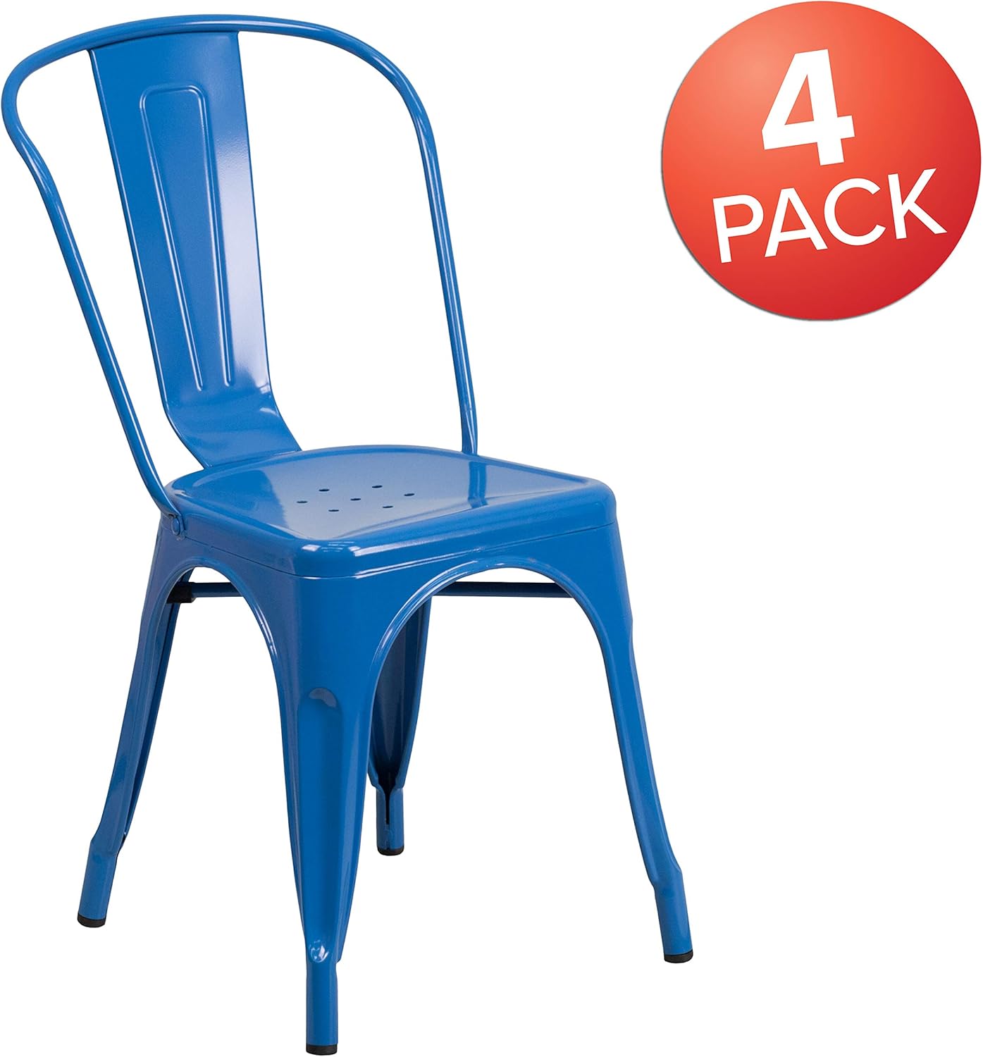 EMMA + OLIVER 4 Pack Blue Metal Stackable Indoor-Outdoor Chair – Restaurant & Bistro Chair