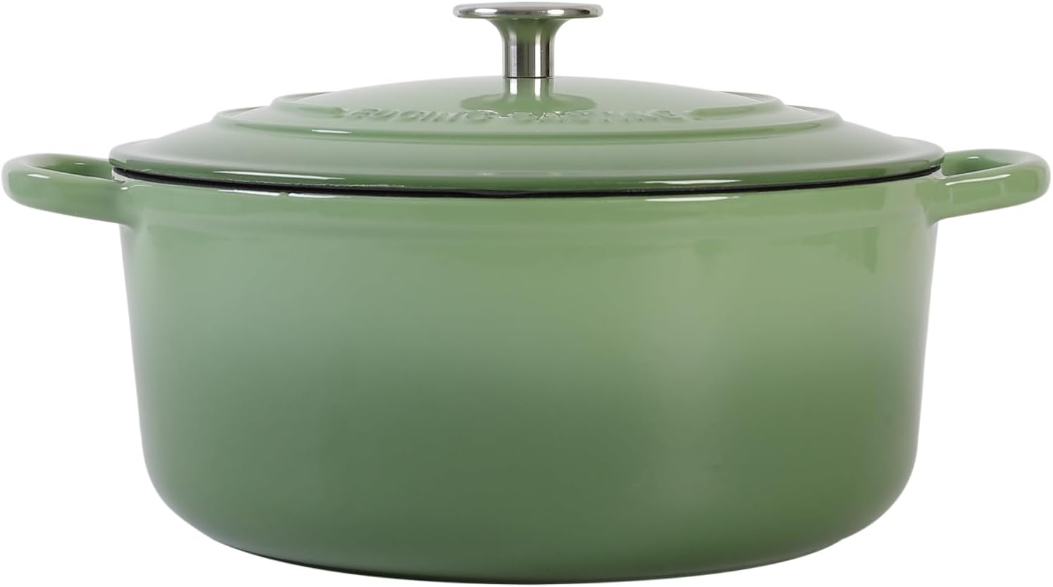 Enameled Cast Iron Dutch Oven Pot With Lid, 5.5 Quart, for Bread Baking, Cooking, Pistachio Green