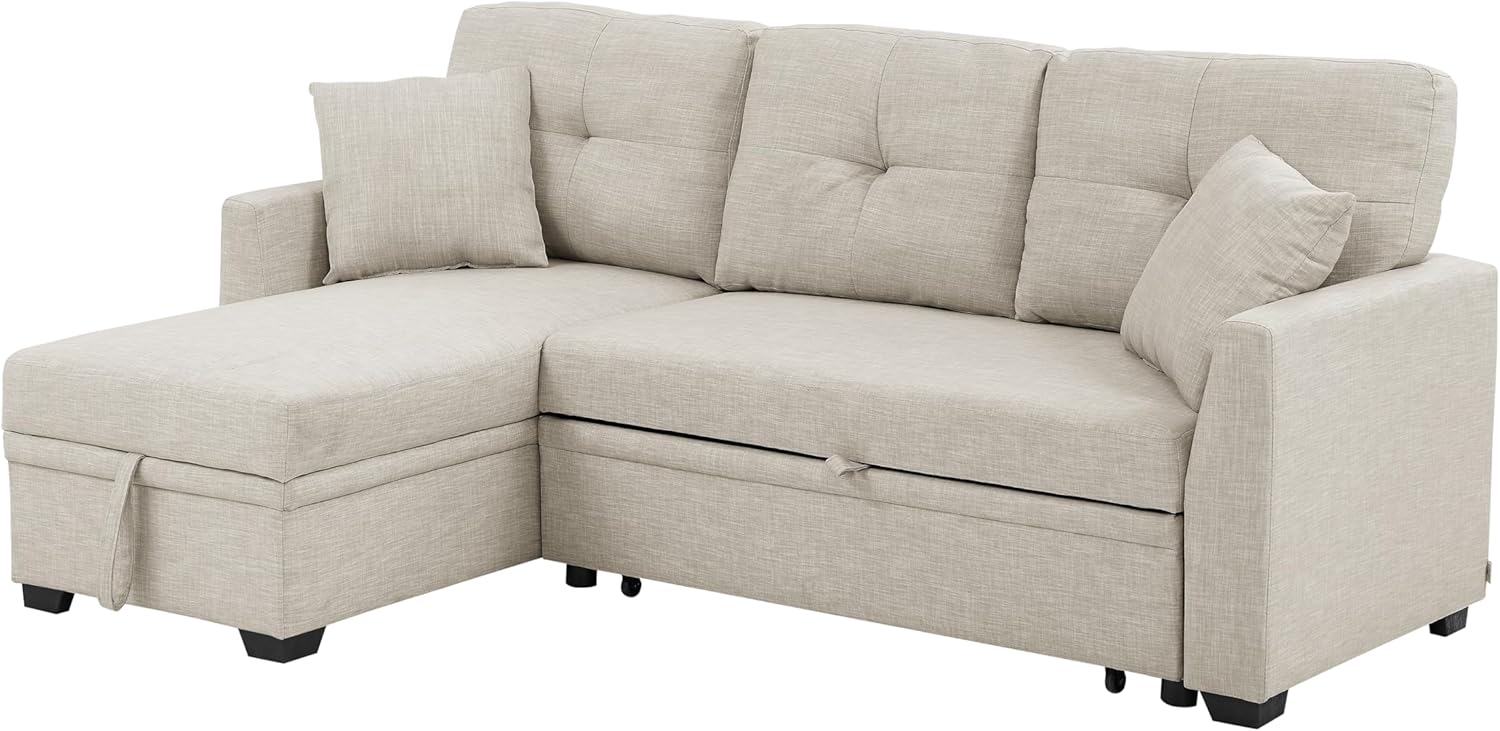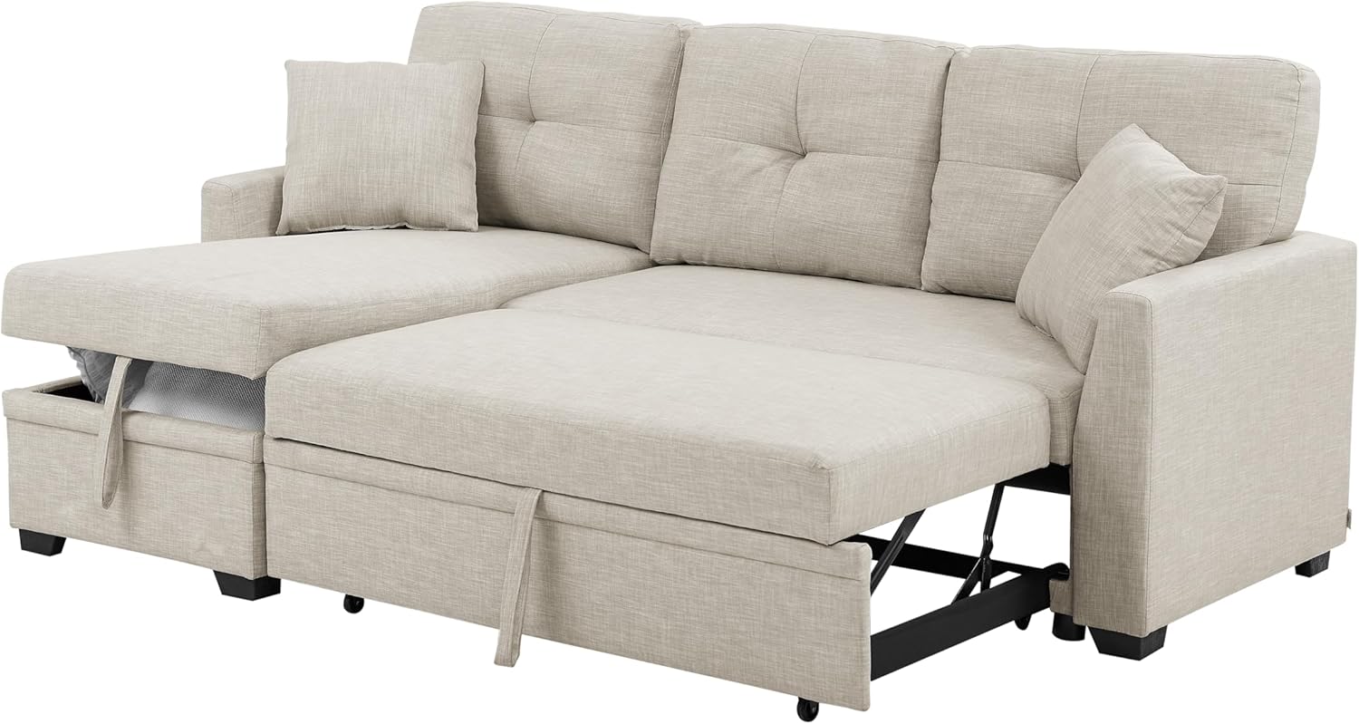 【Sleeper sofa with Storage】The L-shaped sofa bed has a large storage space. Ideal for storing seasonal blankets, extra pillows,exercise equipment and living room items you want to store easily, making the room look neat and clean.