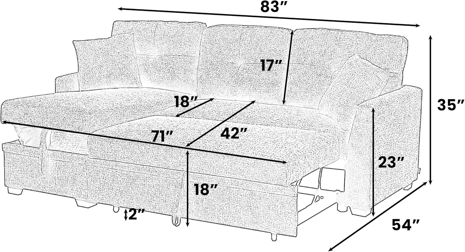 ️ ️ 🏡 Overall : 54″ D x 83″ W x 35″ H