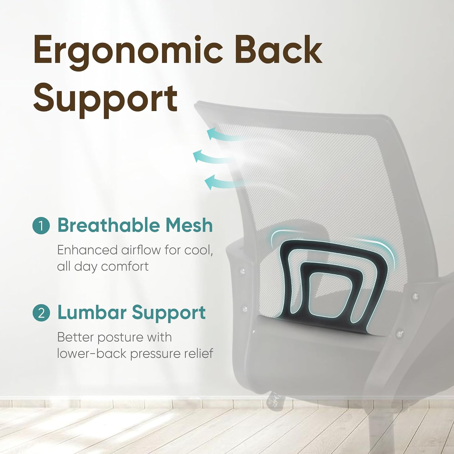 Breathable Mesh – Quality mesh ensures an optimal level of breathability. Built-in lumbar support promotes healthy posture.