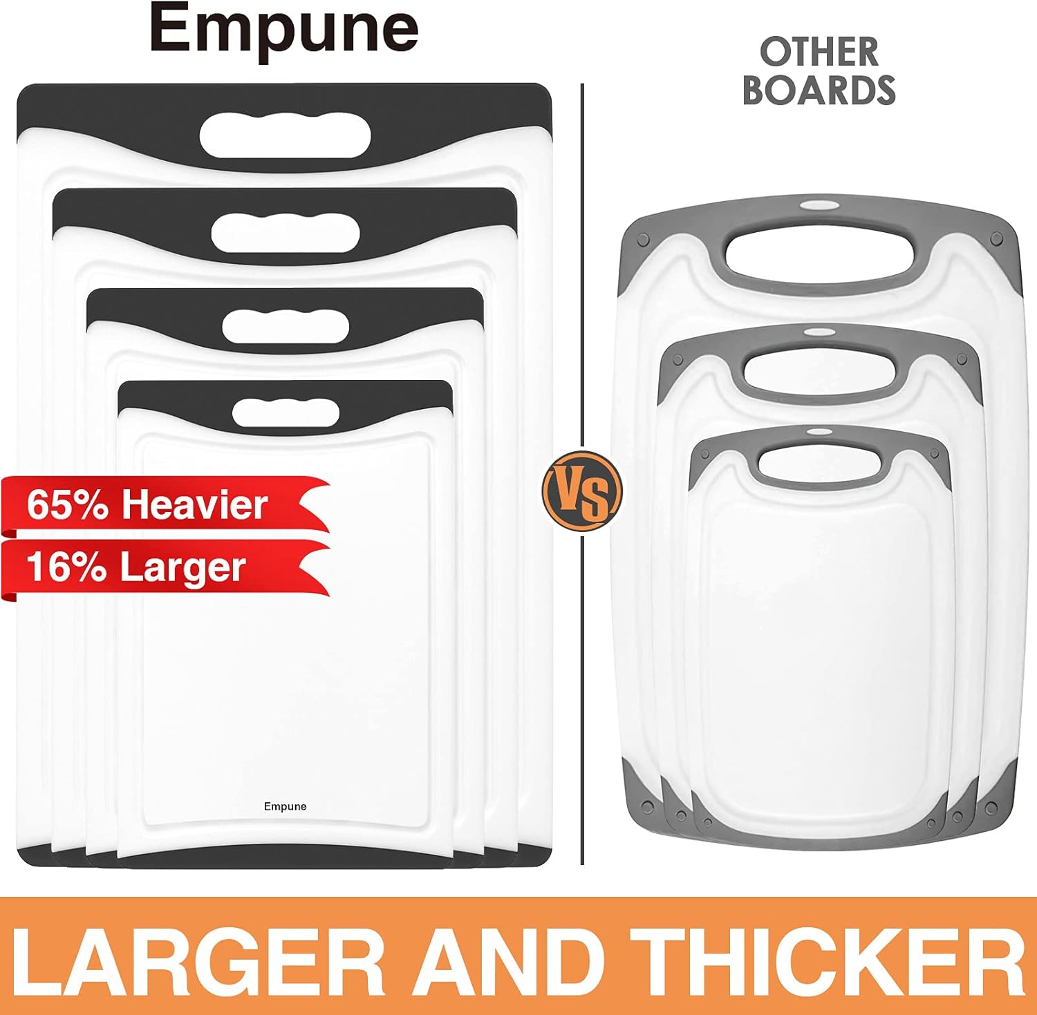 Extra Large Cutting Boards, Plastic for Kitchen (Set of 4) Dishwasher Chopping Board with Juice Grooves, Easy-Grip Handles, Black, Empune