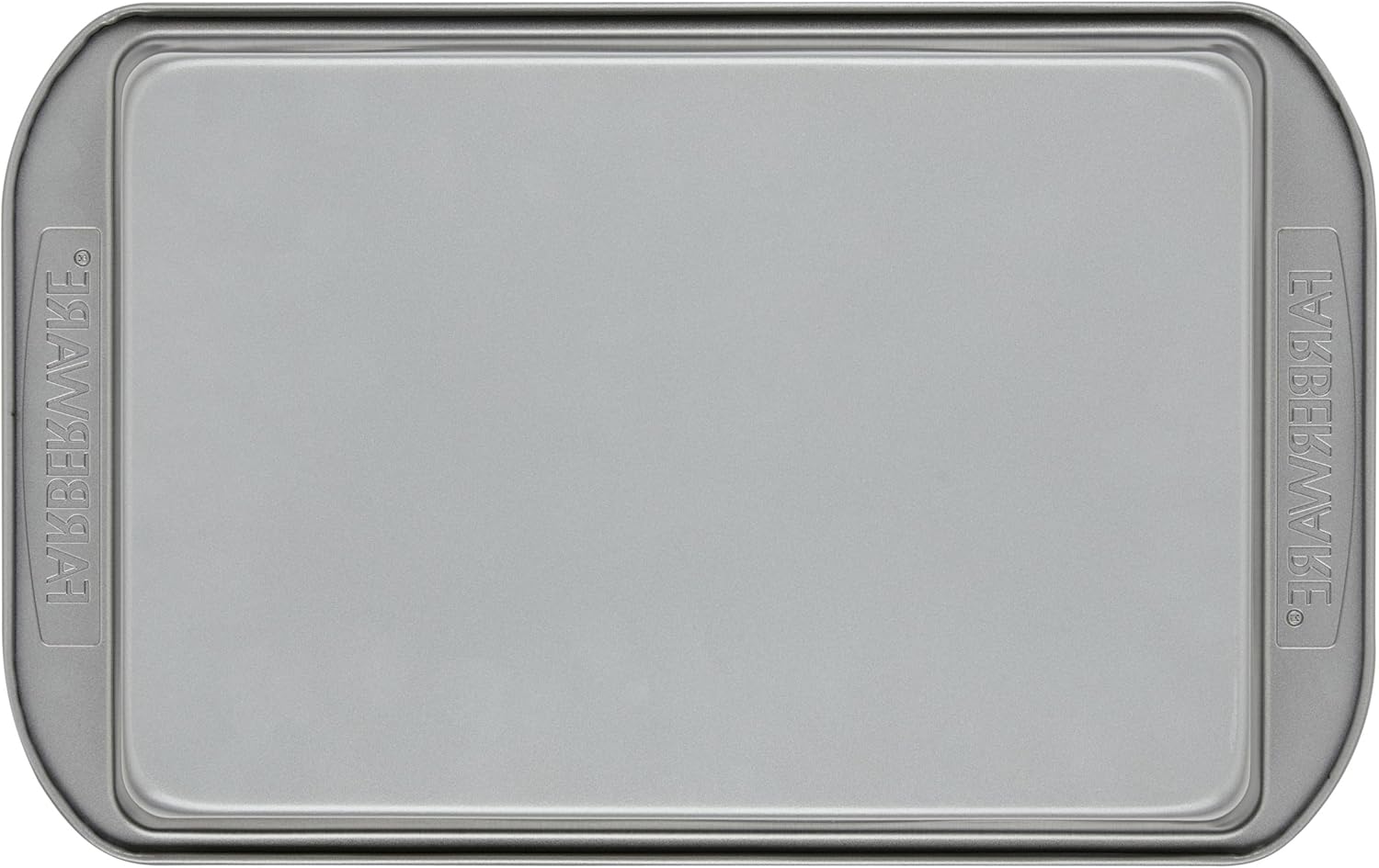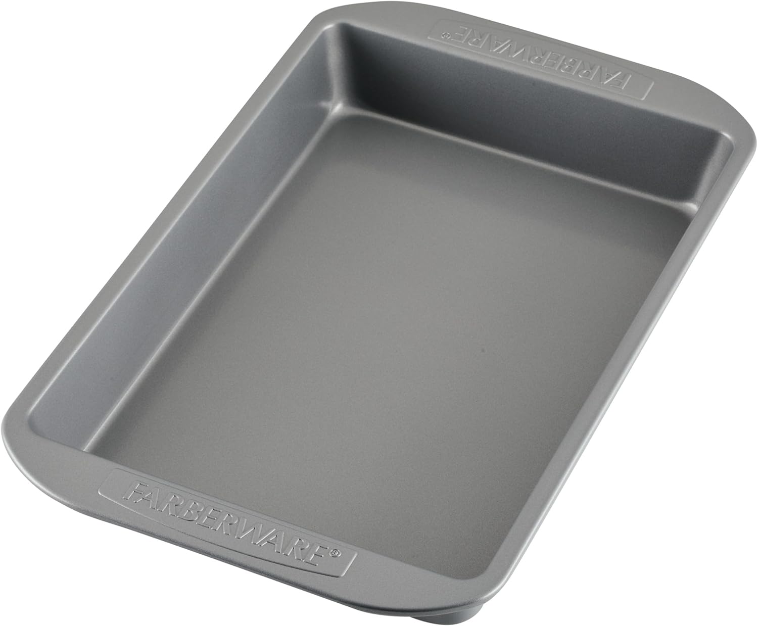 Bake more than cakes in the Farberware Nonstick Bakeware 9-Inch x 13-Inch Rectangular Cake Pan. The go-to choice for baking double batches of brownies and homemade birthday party cakes, this rectangular cake pan is also ideal for preparing rich lasagnas, spicy enchiladas and other savory meals. Featuring heavy-duty construction, the durable cake pan reliably warp resistant and heats evenly to brown beautifully and help reduce hot spots that can burn baked goods. Nonstick inside and out – thoughtfully designed and responsibly made without PFAS, PFOA, lead, or cadmium* – delivers great food release with quick cleanup. Oven safe to 450 degrees F, this nonstick cake pan makes an ideal addition to the cookie, muffin and other baking pans in the Farberware Bakeware collection. Whether it’s chocolate cake or casseroles, the versatile Farberware Nonstick Bakeware 9-Inch x 13-Inch Rectangular Cake Pan helps create both memorable desserts and main dishes. *Product design does not involve intentionally adding to the interior nonstick coating any of these substances which may otherwise be present in the environment.