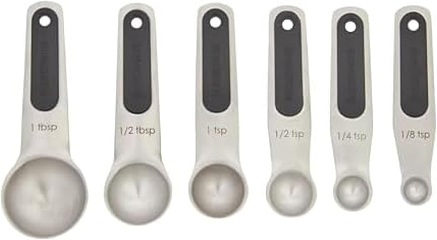 This Set of 6 Magnetic Measuring Spoons by Farberware is perfect for measuring both wet and dry ingredients while cooking or baking. Each handle features an earth magnet that keeps the spoons together while nesting in drawers and cabinets, or allows them to stick to magnetic knife strips for easy storage. These essential spoons are specially designed to make leveling ingredients effortless, with etched, simple-to-read measurement markings for greater precision. Highly durable, they’re made from sturdy stainless steel that stands up to everyday use. Dishwasher safe.