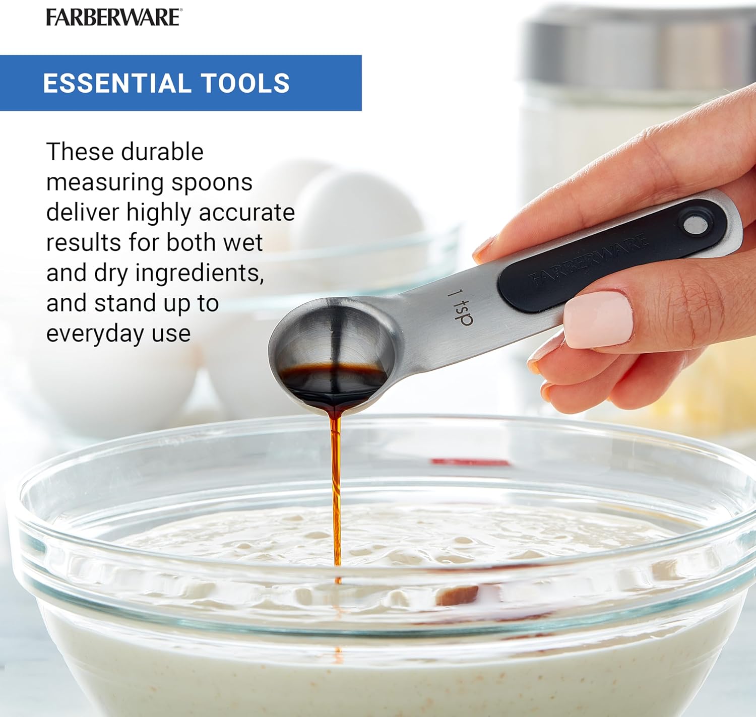 Farberware Professional Stainless SteelMeasuring Spoons Precision and Ease in Every Scoop, Features Magnetic Handles for Easy Storage, Dishwasher Safe