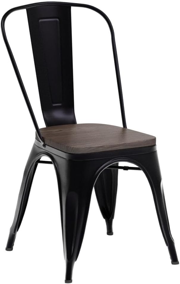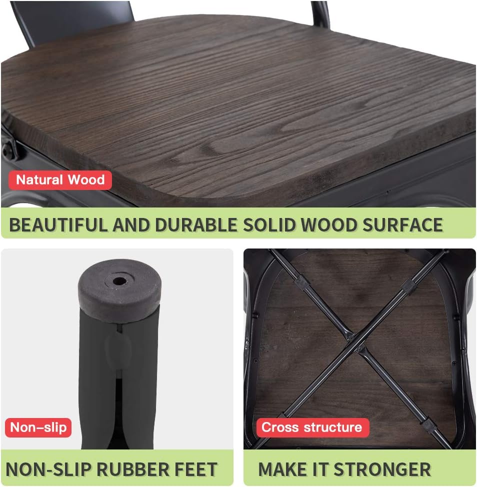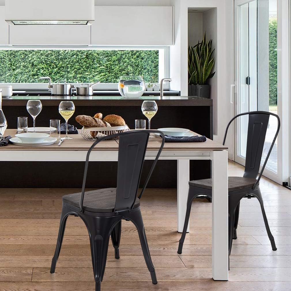 FDW | Metal Dining Chairs with Wooden Seat | Set of 4 | Black | Stackable Tolix Side Chairs with Backrest | Scratch-Resistant | Non-Slip Feet | Indoor/Outdoor Use | 330 lbs | for Dining & Kitchen