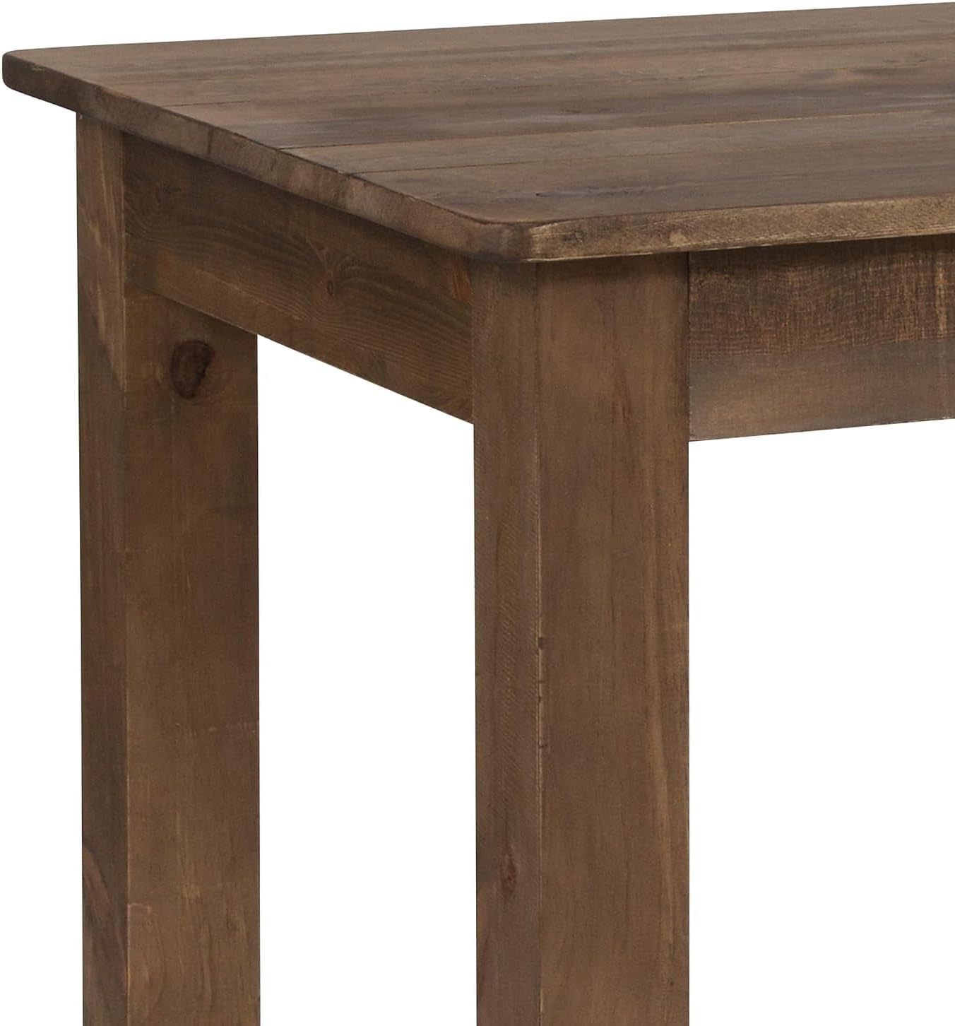 Set a stylish and rustic anchor in the heart of your home with this rectangle dining room table where family can come together for delicious food and great conversation. Accommodate visiting guests with this rustic dining table that can comfortably seat up to four people. With its solid pine construction our beautiful farm table is suitable for daily use in restaurant and hospitality industries. To keep in spotless condition, use a water based cleaner and follow-up with a dry cloth. While constructed for indoor use, our sturdy dining room table can be taken outdoors for special events like family get-togethers and backyard barbecues during good weather. Achieve country-rustic appeal by leaving the table as-is, or easily dress it up with a tablecloth for elegant events.