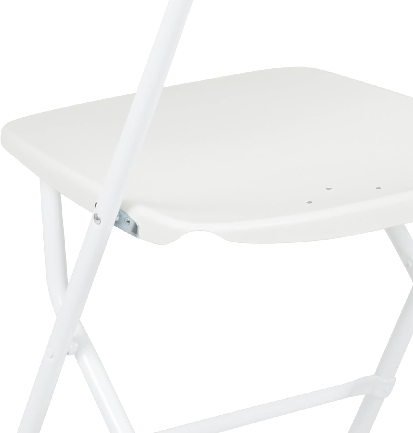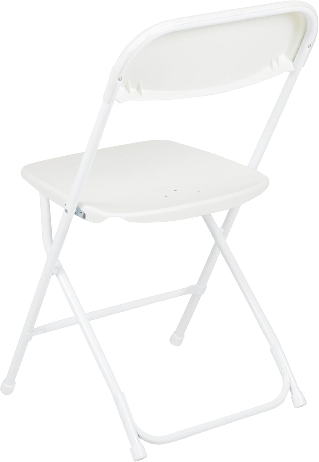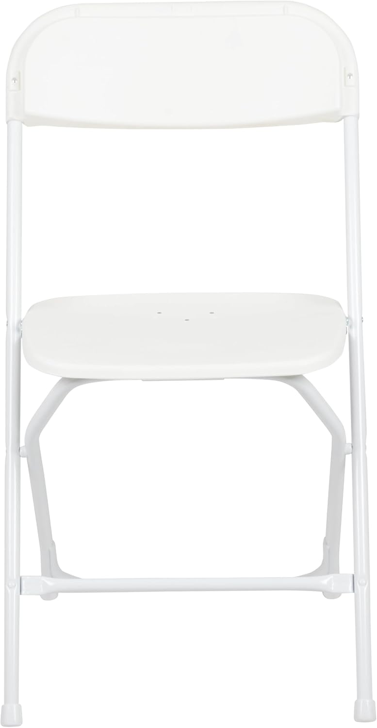 Always be ready for your next event or get-together with the Flash Furniture Hercules Series Folding Chairs. Whether you’re hosting a game night or catering event, planning weddings or business meetings, or organizing a school function, these folding plastic chairs offer a reliable, on-demand seating solution for commercial or home use. The textured and contoured plastic seats with dry-assist drainage holes prevent water pooling in the event of rain. Made for portability and ease of use, the folding chairs have an ultra-lightweight design and feature floor caps that protect flooring surfaces. The chairs can also be nested horizontally for a stack quantity of up to 50 chairs high from the floor or vertically in closets or sheds, allowing for compact storage. With a combination of double-support braces and 18-gauge steel frames, these small folding chairs support up to 650 pounds of static weight and withstand years of quality use at indoor or outdoor events. Each event chair measures 17.5″ W x 18″ D x 31.5″ H open with a 15.5″ W x 15.5″ D x 17.75″ H seat, 17.5″ W x 15.5″ H back, and 17.5″ W x 2.5″ D x 38.25″ H folded with no assembly required. As needed, the low-maintenance chairs can be wiped down with water and a dry cloth for quick and easy cleaning.