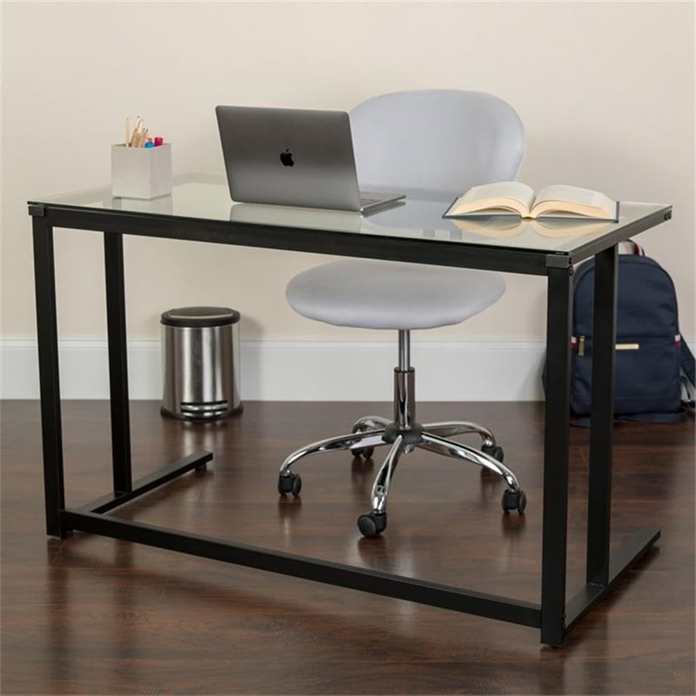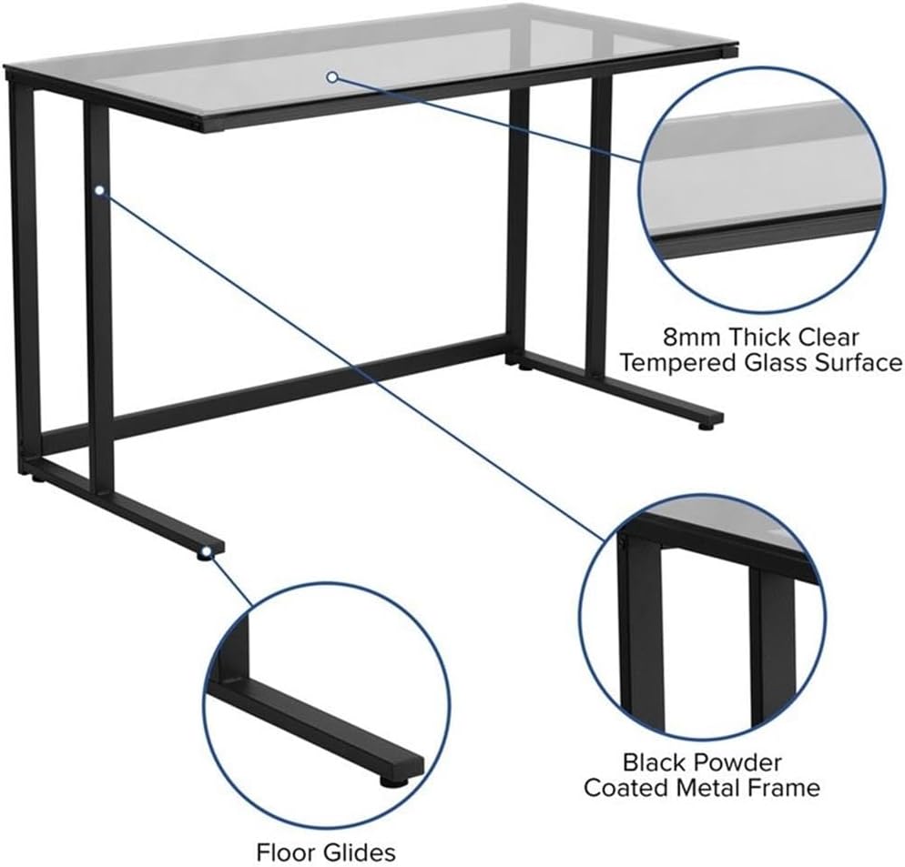 Flash Furniture Singleton Glass Desk with Black Pedestal Metal Frame