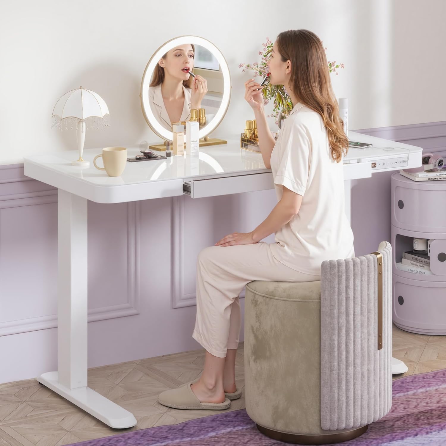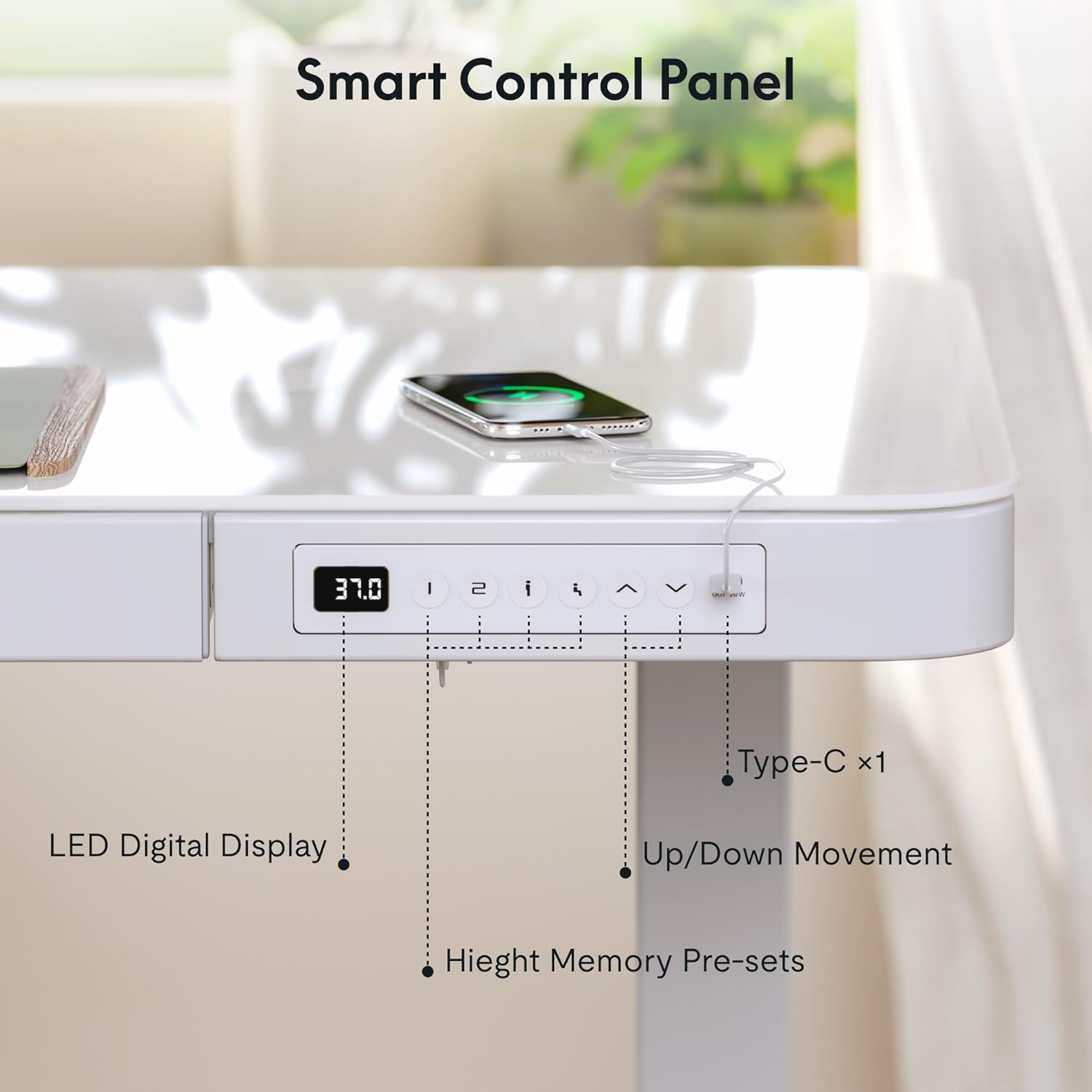 Embedded Multiple Functions: Easily save multiple with four programmable height presets, a child lock button helps prevent accidental touch. Charge up to three devices with integrated USB ports (Type-C output: 5V3A/9V2.2A/12V1.67A,MAX20W) without mess & hassle. (Note: USB ports may pause charging while adjusting desk height, Laptop charging is not supported)