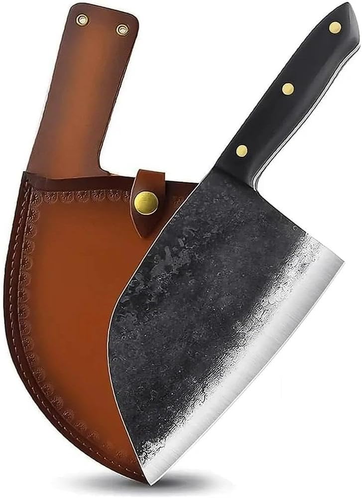 Distinctive Aesthetic – The serbian chef knife is not just a tool; it’s a piece of art. The butcher knife’s sleek design and handcrafted finish make this butcher knife a statement piece in any kitchen. The leather sheath adds a touch of luxury, while the meat cutting knife’s unique pattern and forged details reflect the craftsman’s skill and attention to detail