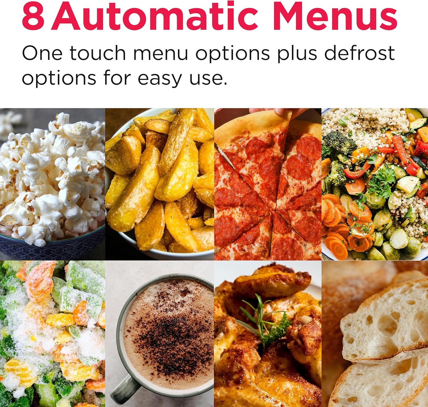 5 ONE TOUCH COOK MENUS: POTATO, POPCORN, BEVERAGE, REHEAT, FROZEN DINNER