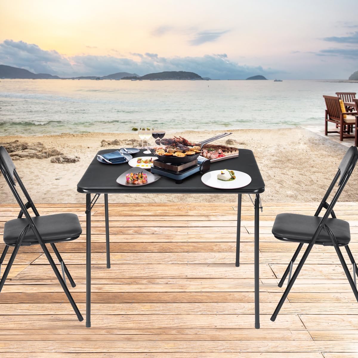 Multi-Purpose Functionality: Perfect for a variety of uses—serve as a card table for game nights, dining table for small gatherings, home office desk, or outdoor table for patios, balconies, backyards, and poolside entertaining.