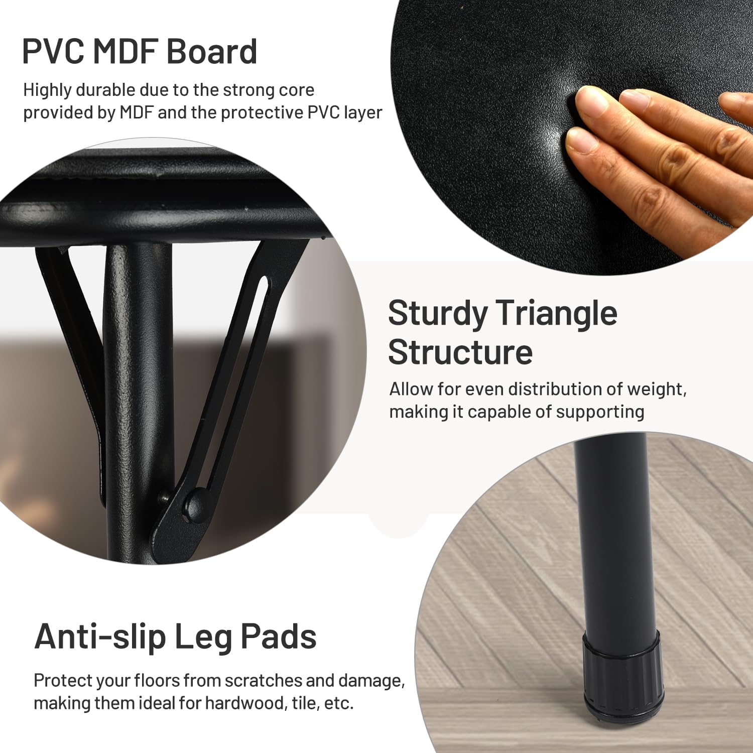 Durable Construction: Crafted with a strong metal frame and a high-quality PVC tabletop, this folding table is built to withstand daily use. The PVC surface is resistant to stains, scratches, and water, ensuring that it stays looking new for years.