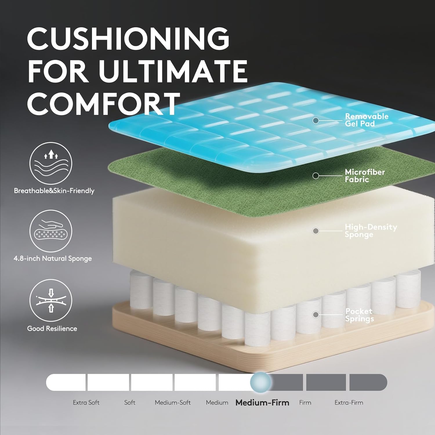 Cooling Comfort Spring Cushion: The seat cushion of this chair is composed of ultra-thick high-density foam and pocket springs, providing sofa-like elasticity and comfort. The springs help distribute pressure evenly, allowing you to sit for long periods without fatigue. An additional detachable gel pad can be placed on the lumbar pillow or seat surface to improve breathability and reduce heat buildup.