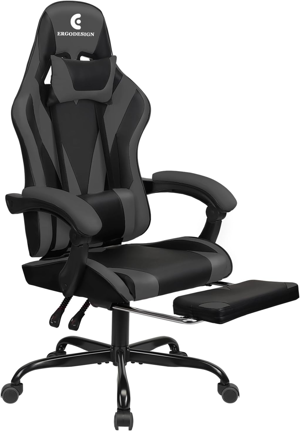 Gaming Chair with Linkage Armrest & Footrest, High Back Video Gaming Chair, Black/Grey