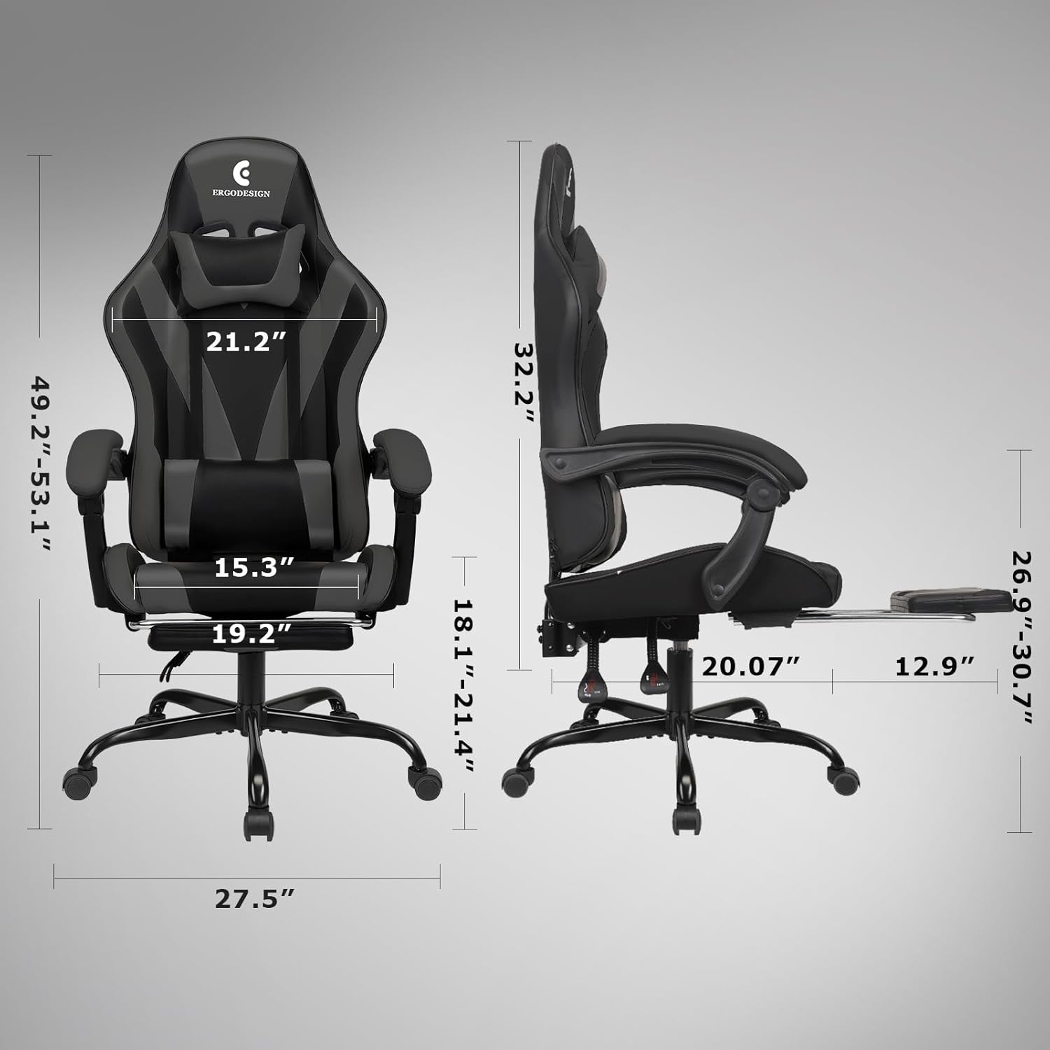 [ Dimension ] The dimension of the gaming chair is about 19.3″L x 20″D x 18.9″-22.8H” (from floor to seat cushion)