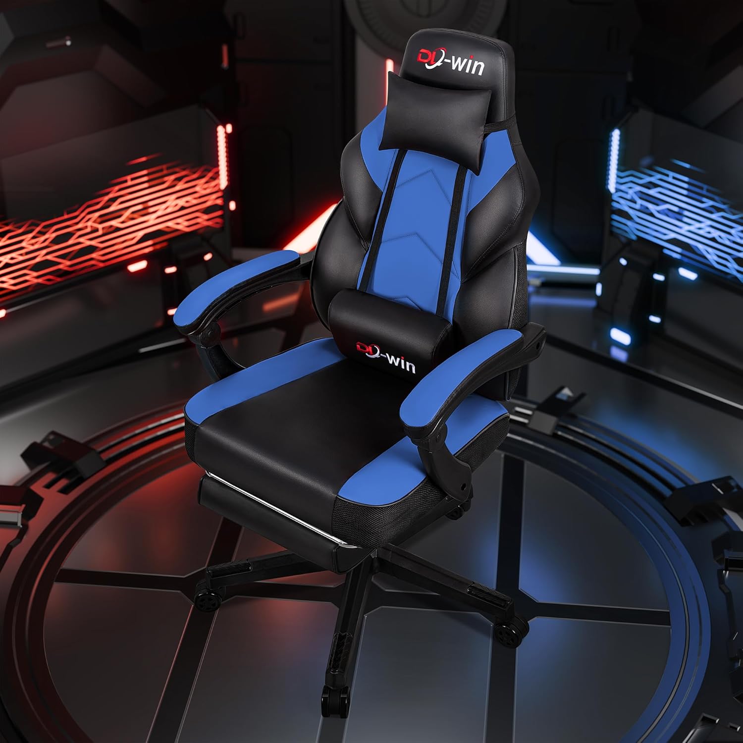 【Versatile Gaming Chair】Our blue gaming chair offer customized comfort to your preferences. njoy the flexibility of 360° swivel, height adjustment and seat back that can be locked in any position up to 135°. In addition, the linkage armrests provide optimal comfort by better supporting your arms and relieving wrist stress and muscle strain