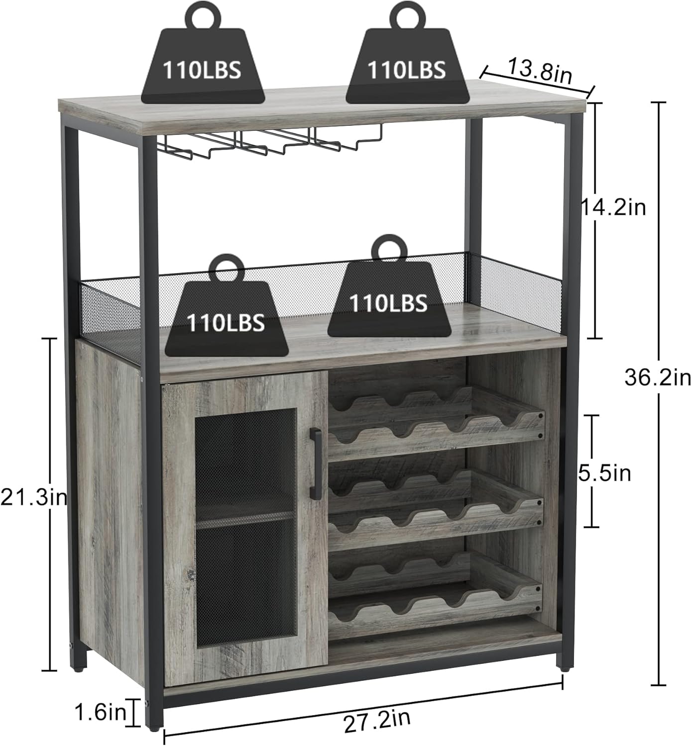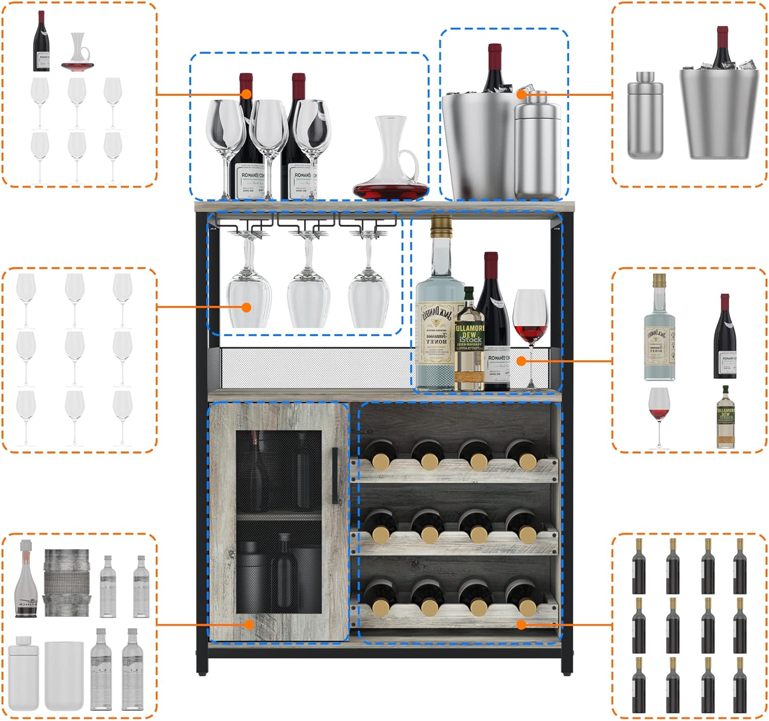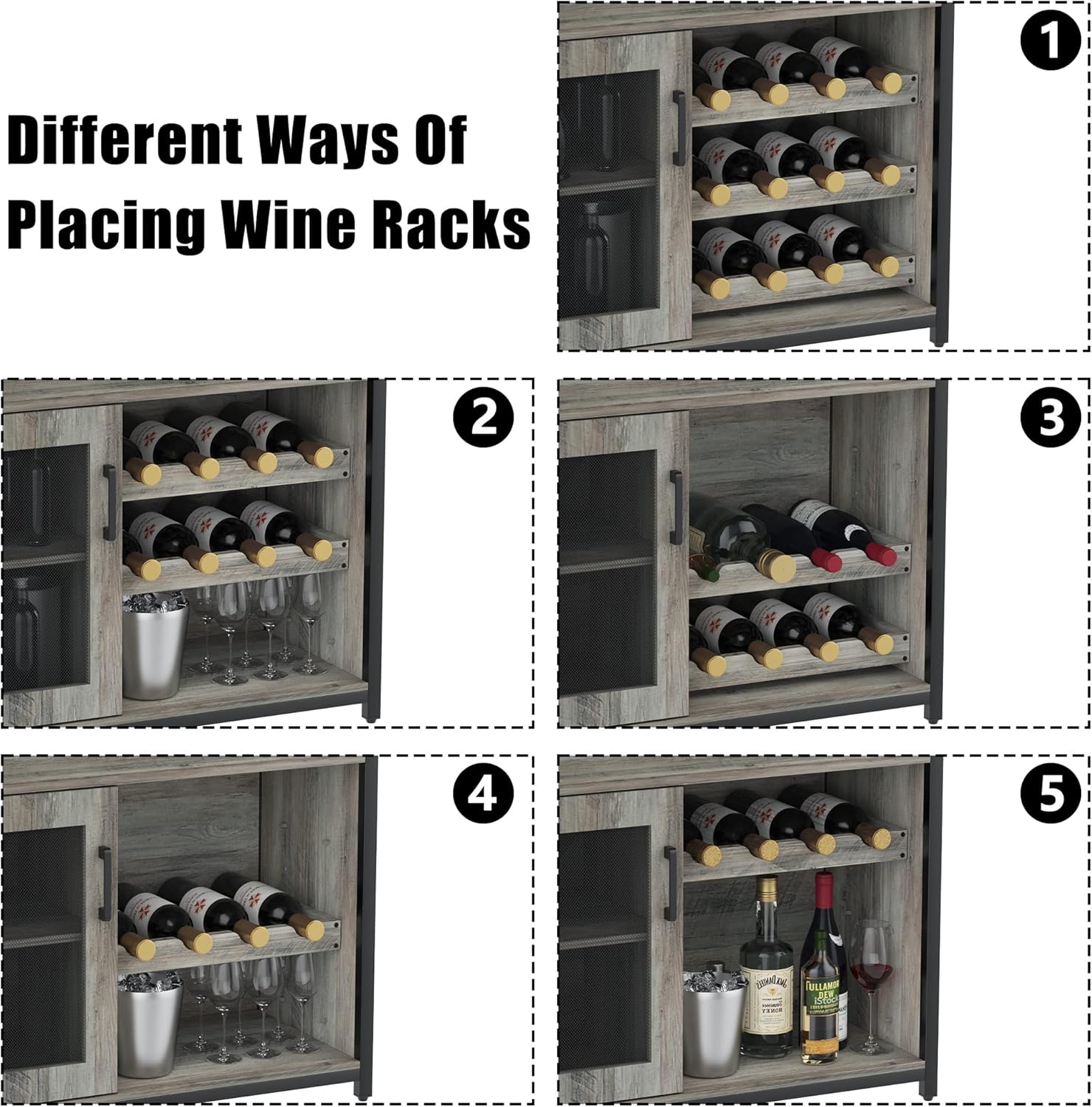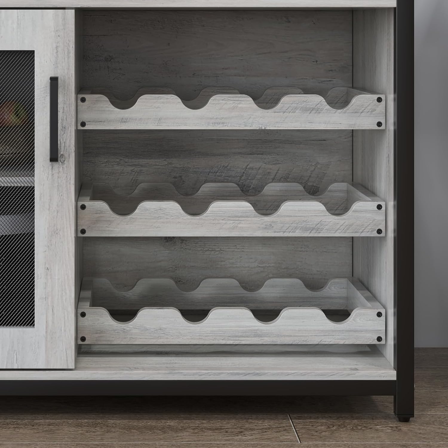 Adjustable Wine Rack: Equipped with an adjustable and removable wine rack, this cabinet allows you to customize the storage layout to fit different bottle sizes and display preferences.