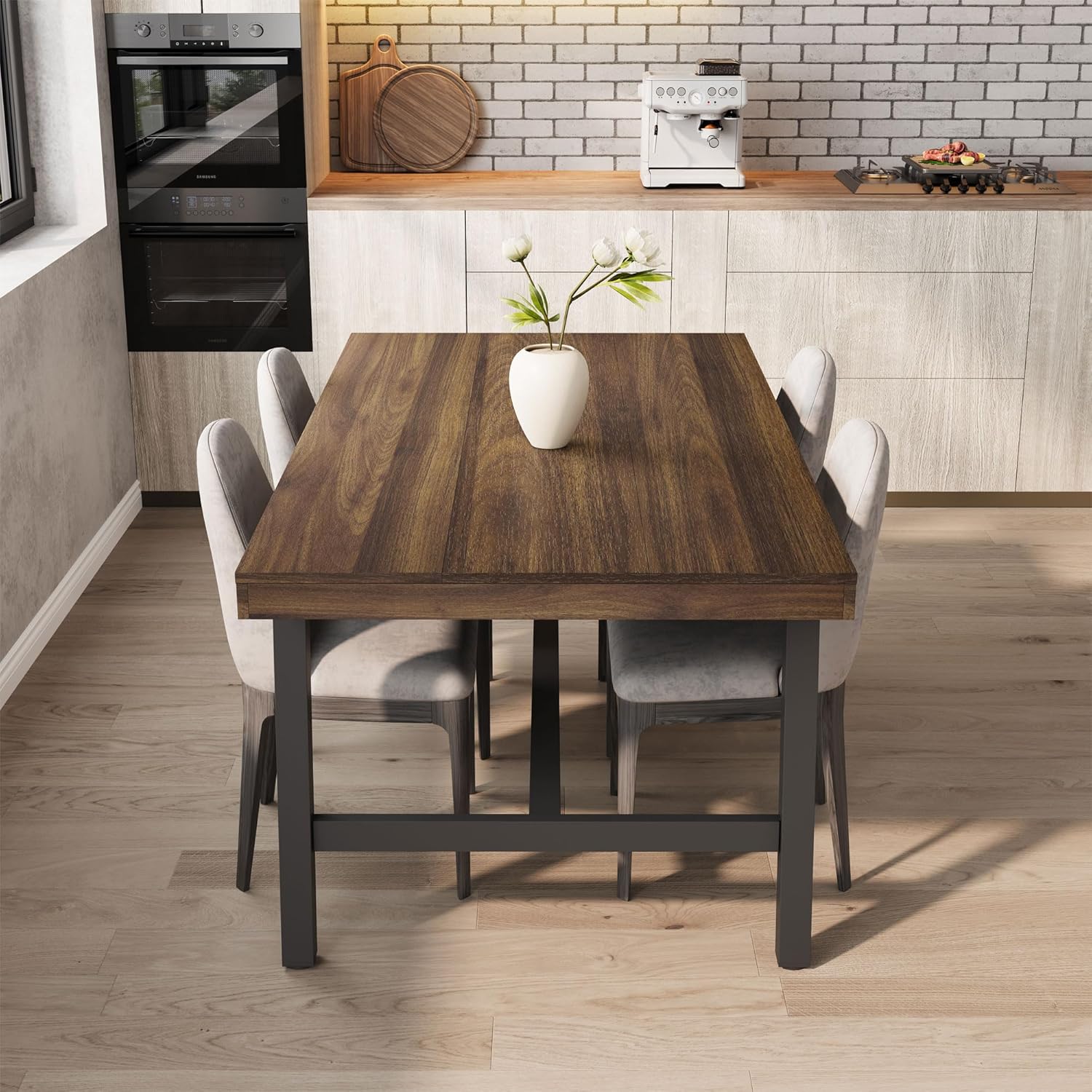 GarveeHome Industrial Dining Table for 6-8 People, 70.87″ Long Wooden Kitchen Table with Sturdy Metal Frame & Rustic Brown Finish (Brown, 70.87″ Long)