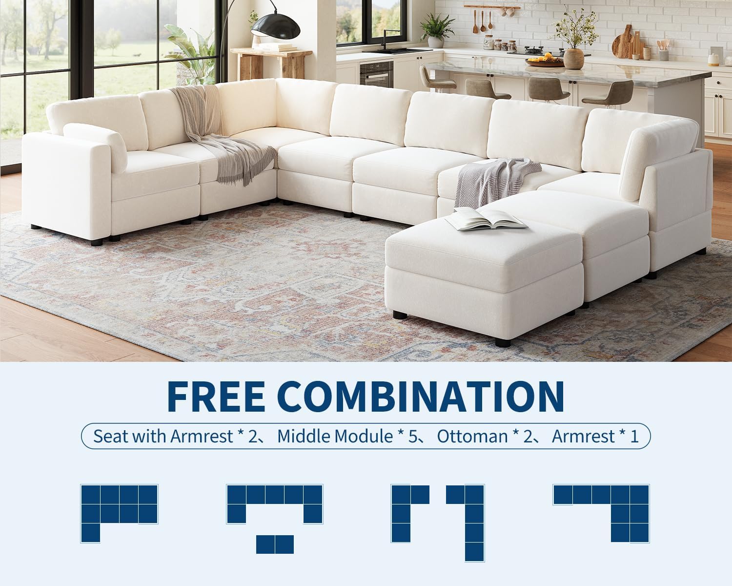 –Flexible Freedom: Enjoy endless layout options with this convertible sofa. Easily configure it into an L-shaped sofa with a chaise, a U-shaped sofa, or even a cozy sofa bed, allowing you to adapt the design to suit your comfort and style preferences