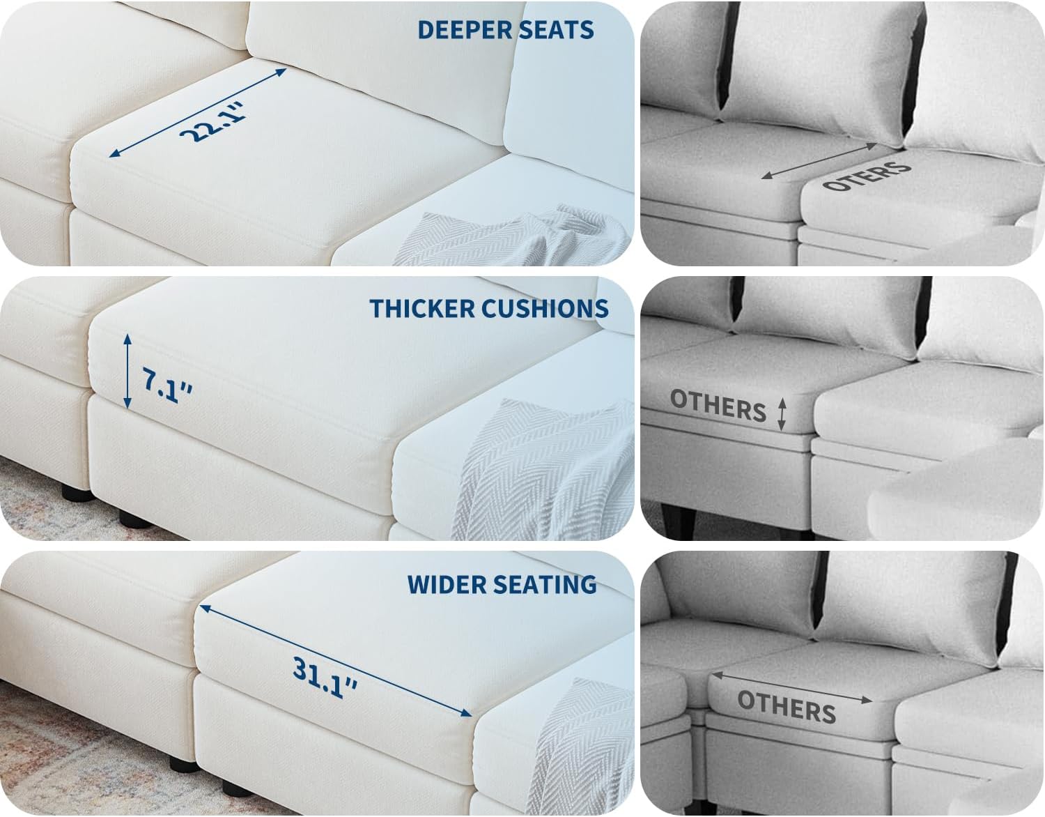 –Easy Maintenance and Assembly: Removable, washable covers for the cushions and backrests make it easy to maintain your large couch. Clear assembly instructions are included, and two people are recommended for a smooth setup due to its size