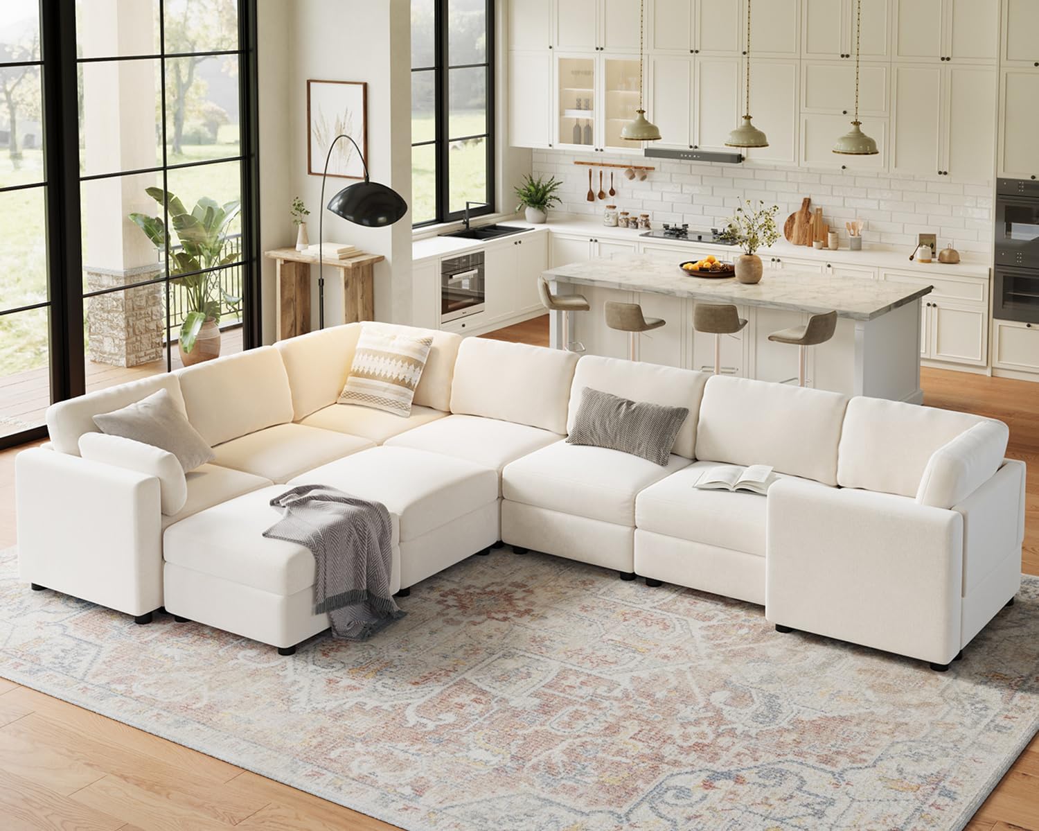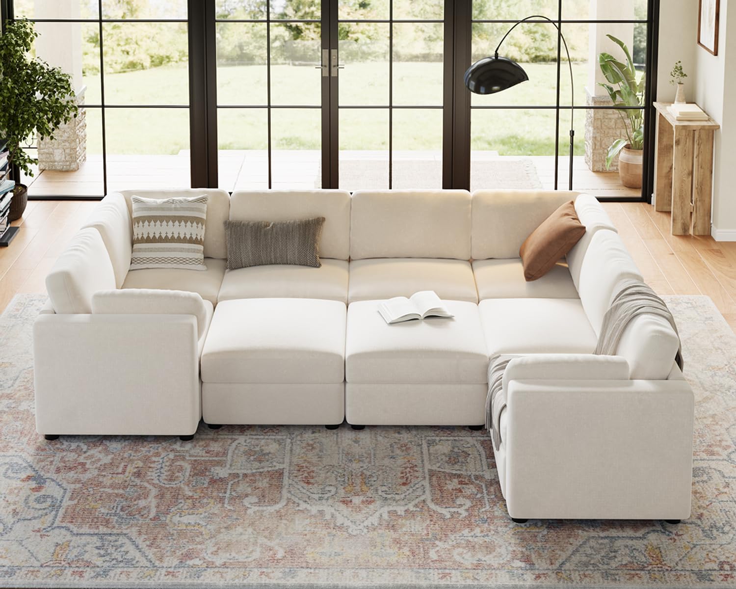 –Cozy Togetherness: This modular sectional sofa comfortably seats nine, perfect for large gatherings or family movie nights. Its spacious design ensures everyone has a cozy spot to relax, fostering an inviting atmosphere in your living room