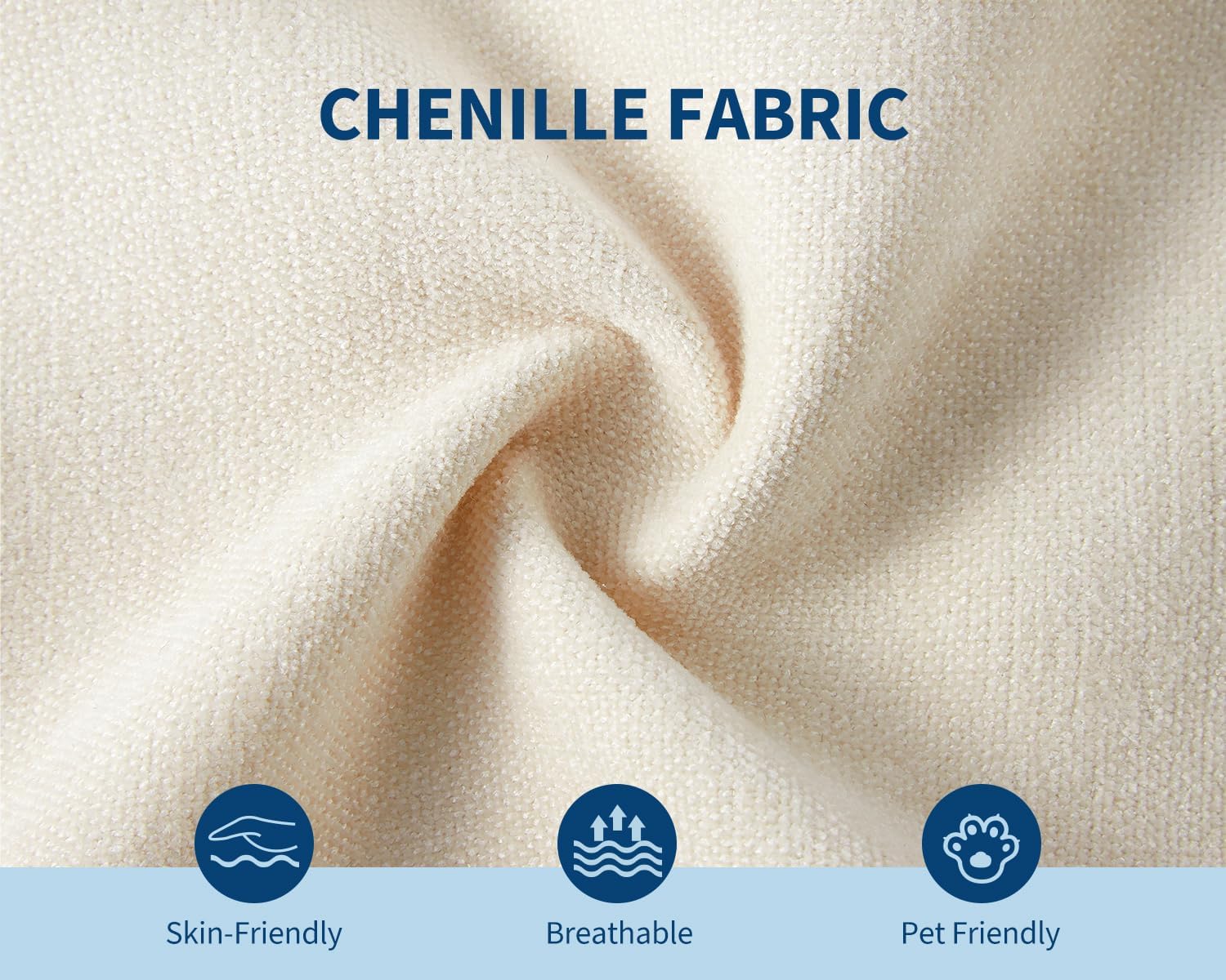 –Embrace Softness: Upholstered in soft beige chenille, this deep-seated cloud sofa combines elegance with comfort. The high-density foam cushions and two plush pillows offer exceptional support, making it an ideal spot for lounging, reading, or napping