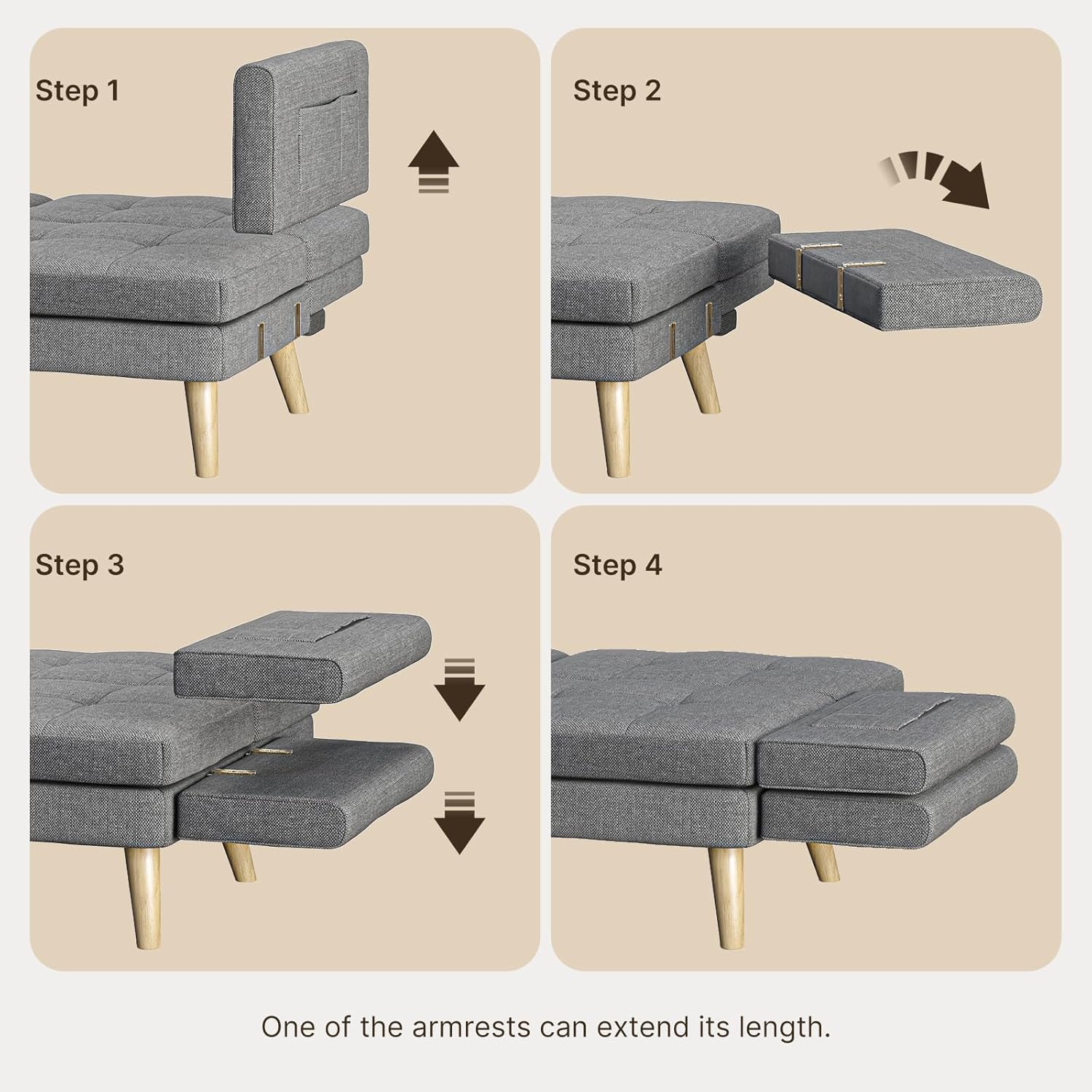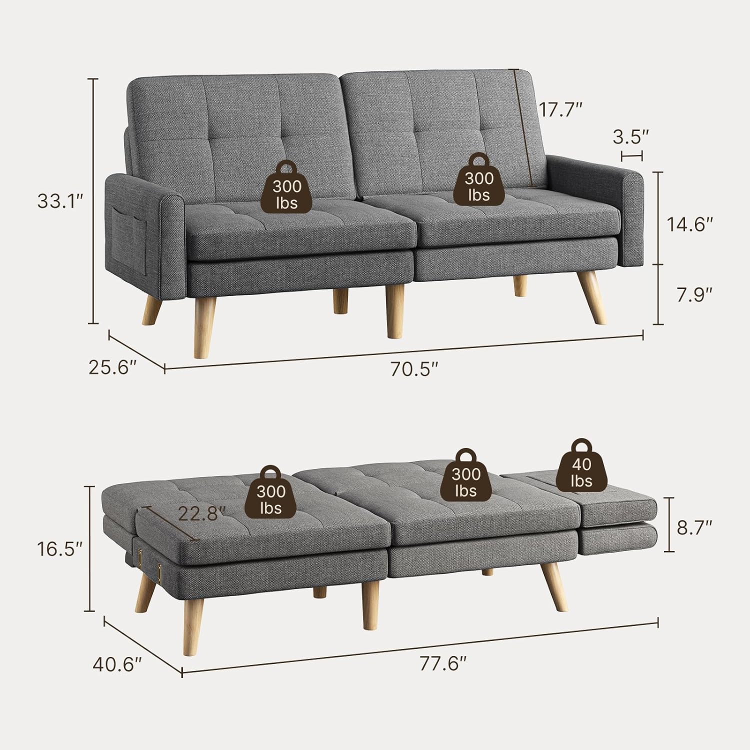 Comfortable Cushions: Our sofa bed is easy to clean; it features soft fabric that provides a superior feel. The height from the ground is suitable for daily use, making it easy to clean underneath. The armrests have pockets for storing remote controls and magazines. The thick foam cushions are comfortable and soft, Due to vacuum packaging, the cushions may appear flat when first opened; please allow 48 hours for them to regain their shape