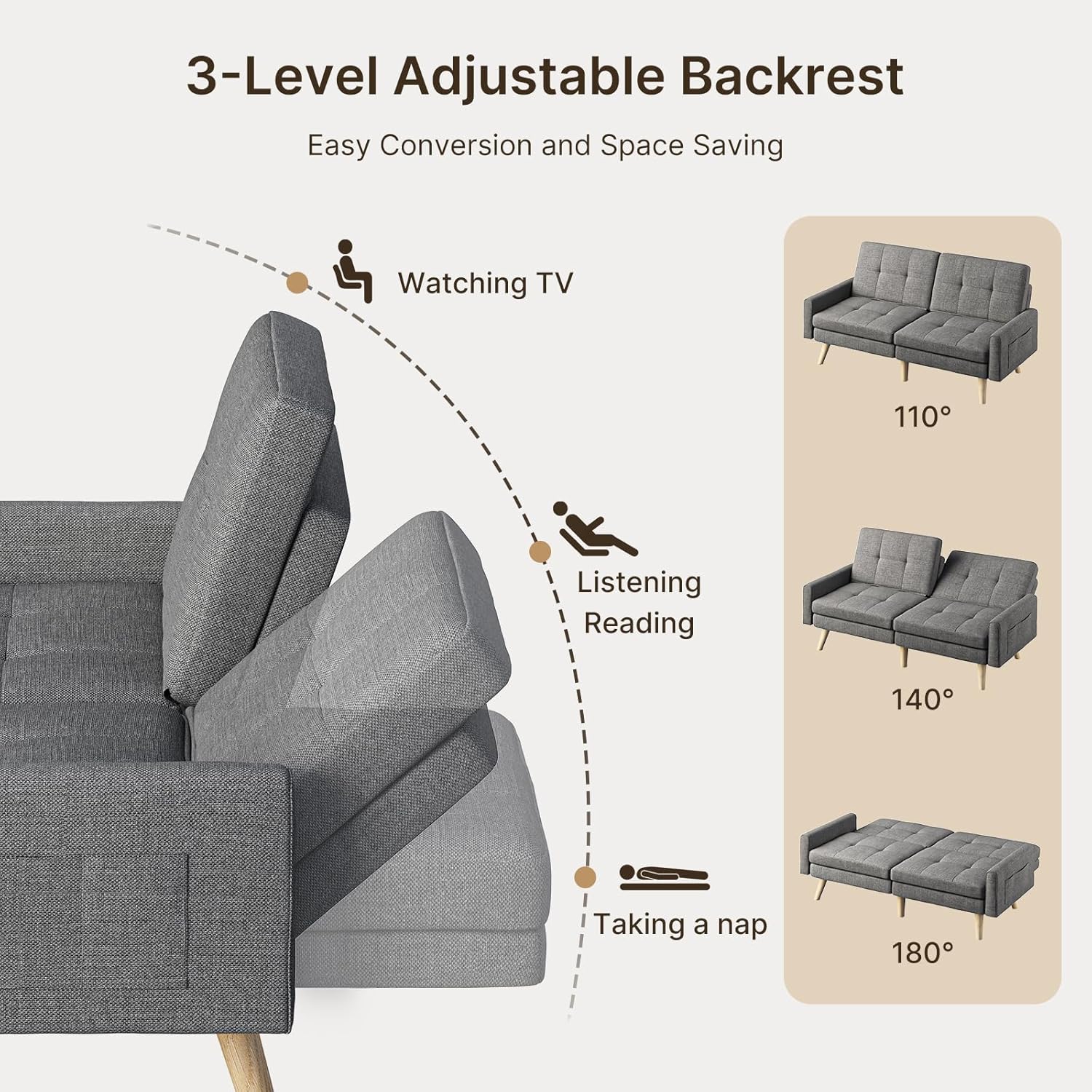 Multi-angle Adjustment: Our sofa bed has a 3-level adjustable backrest, allowing you to customize your sitting experience. Whether you want to sit and watch TV, recline to read and listen to music, or sleep, this sofa can meet your needs. When fully extended, it measures 40.6 inches wide and 77.6 inches long, serving as a spare bed