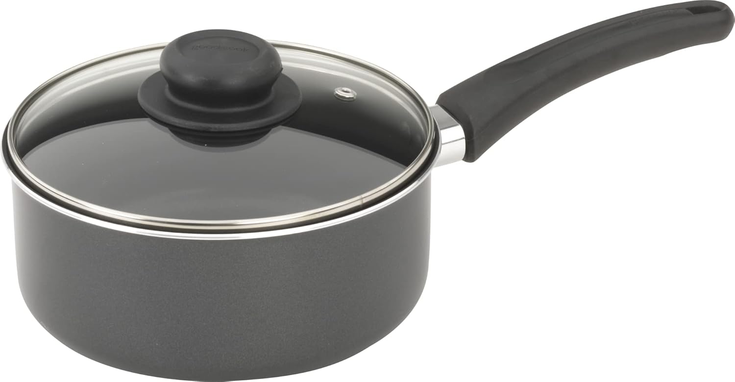 Bring high-quality cookware to your home kitchen with the GoodCook Nonstick Sauce Pan. Designed with home cooks in mind, this nonstick sauce pot features a two quart capacity that is ideal for a variety of cooking applications, from simmering soups and sauces to cooking pasta and rice. This saucepan features a 2 mm aluminum interior with nonstick coating to offer excellent release and convenient cleaning. The flame guard bakelite handle offers a comfortable and secure grip during cooking, and the clear glass lid allows you to see into the pot while still keeping food covered. Plus, the charcoal colored silicone lacquer exterior is both durable and stylish to complement your kitchen. This versatile covered saucepan measures 13.75″ x 7.75″ x 3.7″, allowing you to sauté, boil, simmer, bake, and more with ease. For over 30 years, GoodCook has created the tools that have made life in the kitchen easier and more enjoyable. As we’ve grown, we strived to stay on trend and continually incorporate more function and value into our kitchenware products. We take pride in the fact that GoodCook products are being used every day, and that our name is recognized as a helpful resource supplying products, recipes and inspiration for home cooks across America.