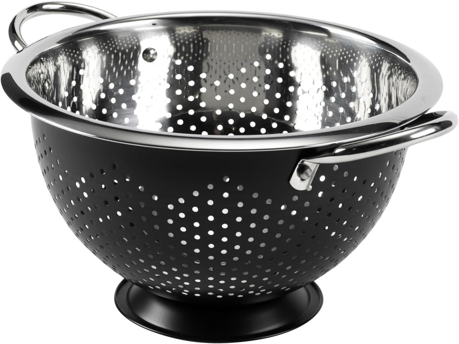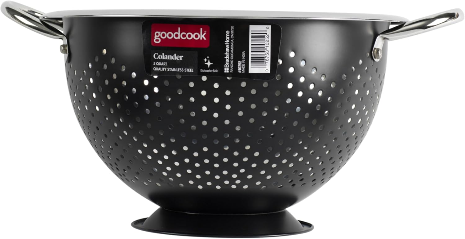 GoodCook Gourmet Colander, 5qt capacity, Stainless Steel with Handles and Elevated Pedestal Foot, Bold Black