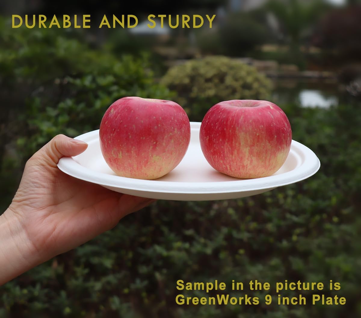 GreenWorks 100 Count 6“ Small Compostable Dessert Plates, Heavy-duty Unbleached Biodegradable Bagasse and Bamboo fiber Paper Plates