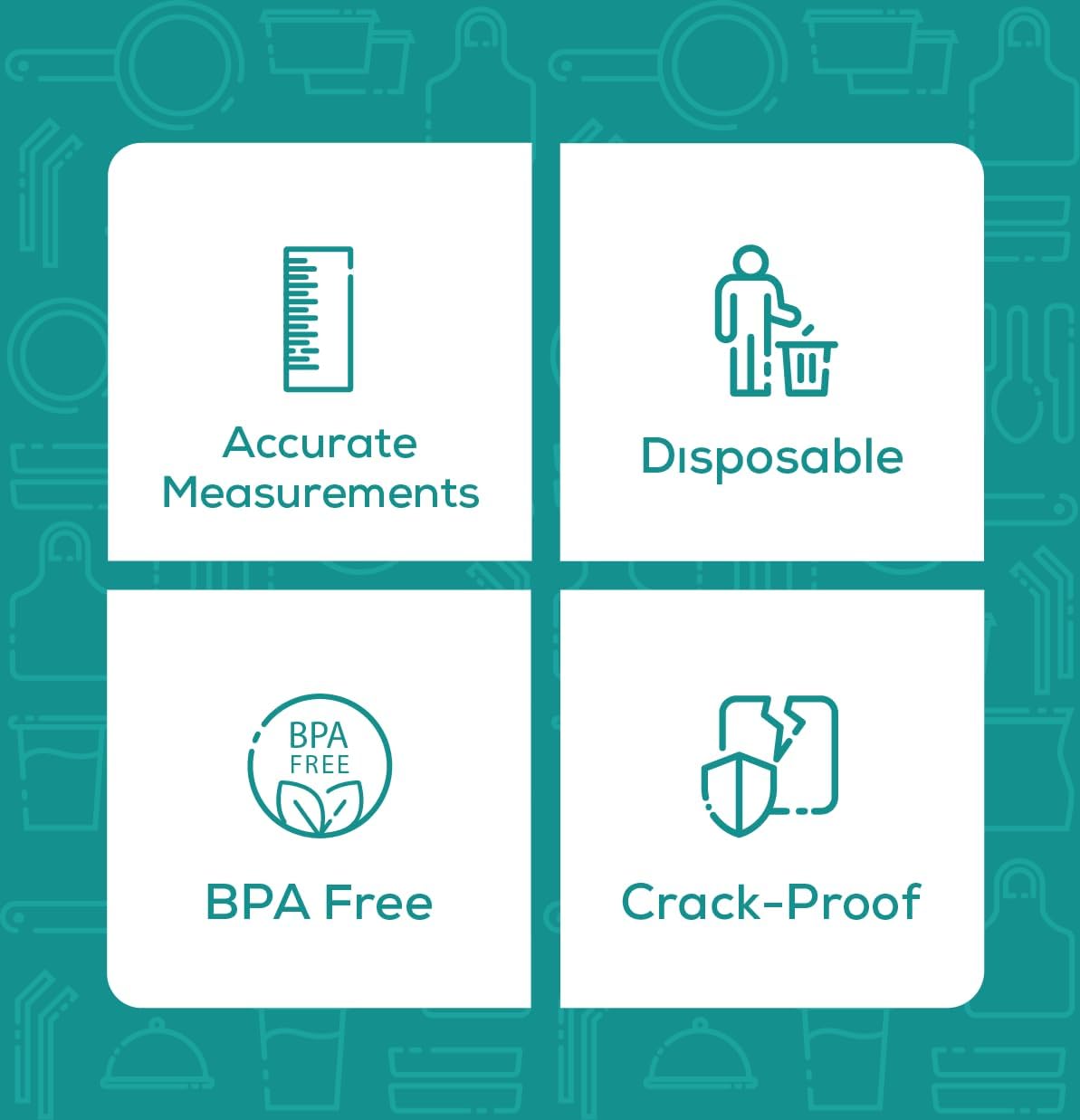 Multi-use cups for your kitchen- a pleasant kitchen experience is just one cup away; These mixing cups eliminate the need for all your utensils, without compromising on efficiency and precision; Between baking, cooking and meal prep, you’ll get the full value