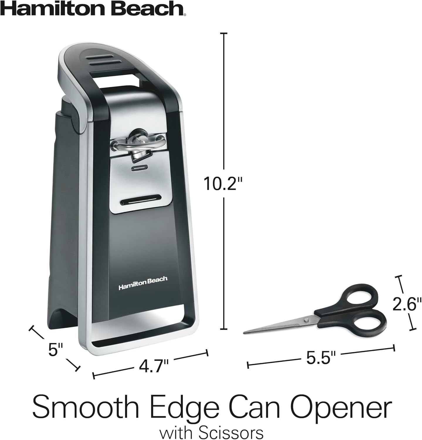 Hamilton Beach Smooth Edge Electric Automatic Can Opener for Kitchen with Easy Push Down Lever, Extra Tall, Includes Stainless Steel Scissors, Black and Chrome (76607)