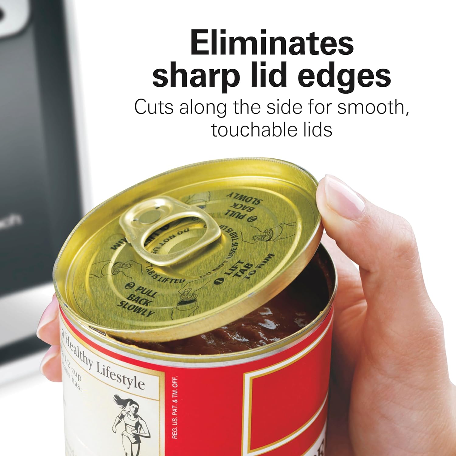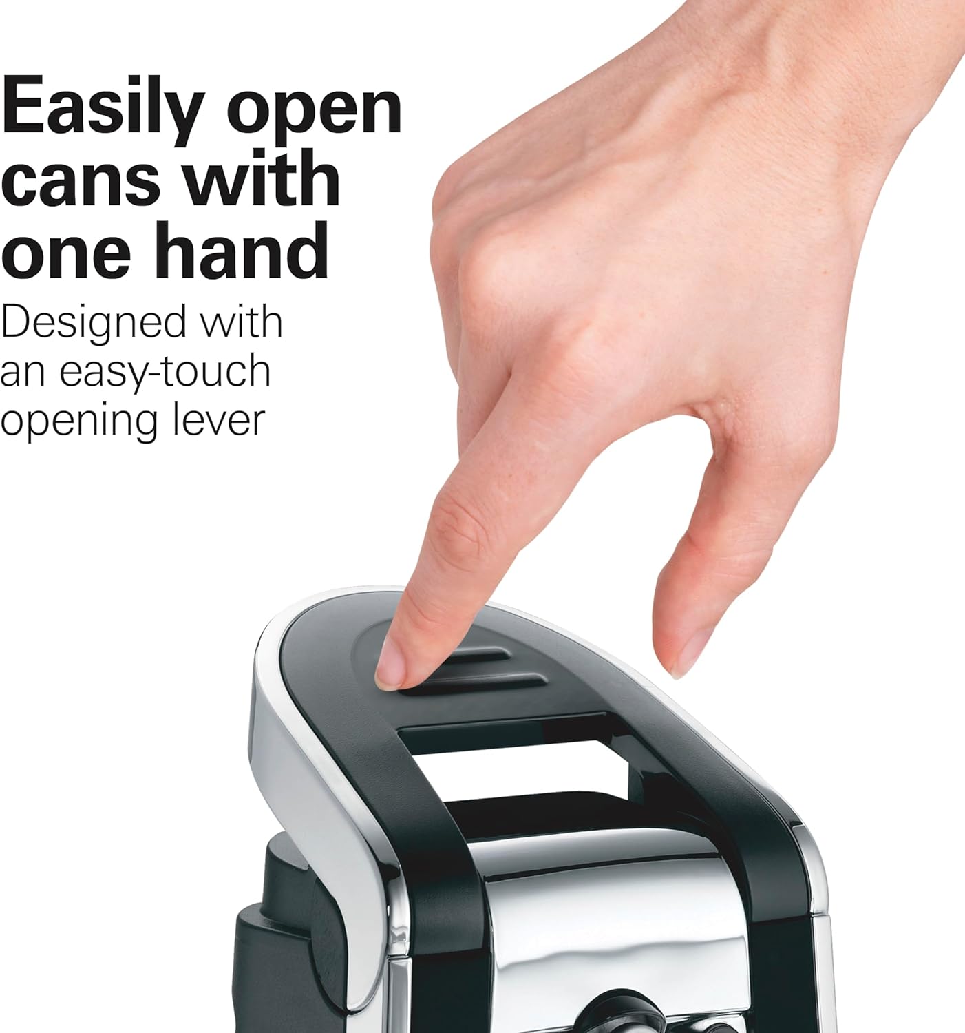EASILY OPEN CANS WITH ONE HAND: Designed with an easy-touch opening lever, this Hamilton Beach can opener easily opens cans with a light touch using one hand. Just align the can and lightly press the lever.