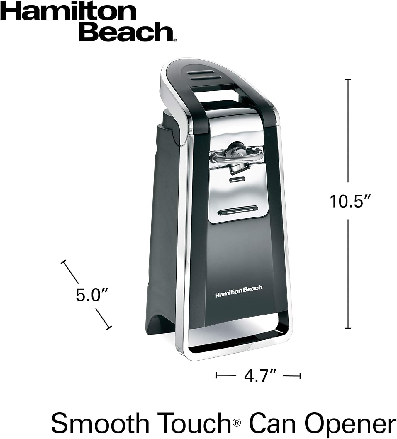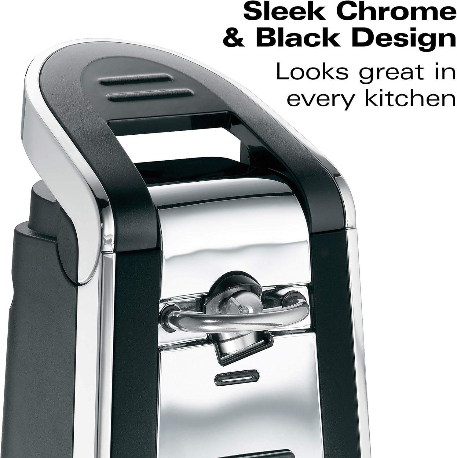 Hamilton Beach Smooth Touch Electric Automatic Can Opener with Easy Push Down Lever, Eliminates Sharp Edges, Opens All Standard-Size and Pop-Top Cans, Extra Tall, Black and Chrome (76606AG)