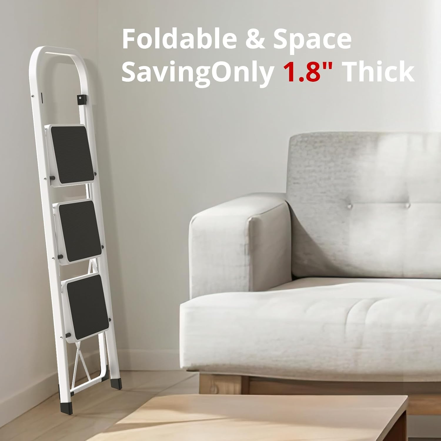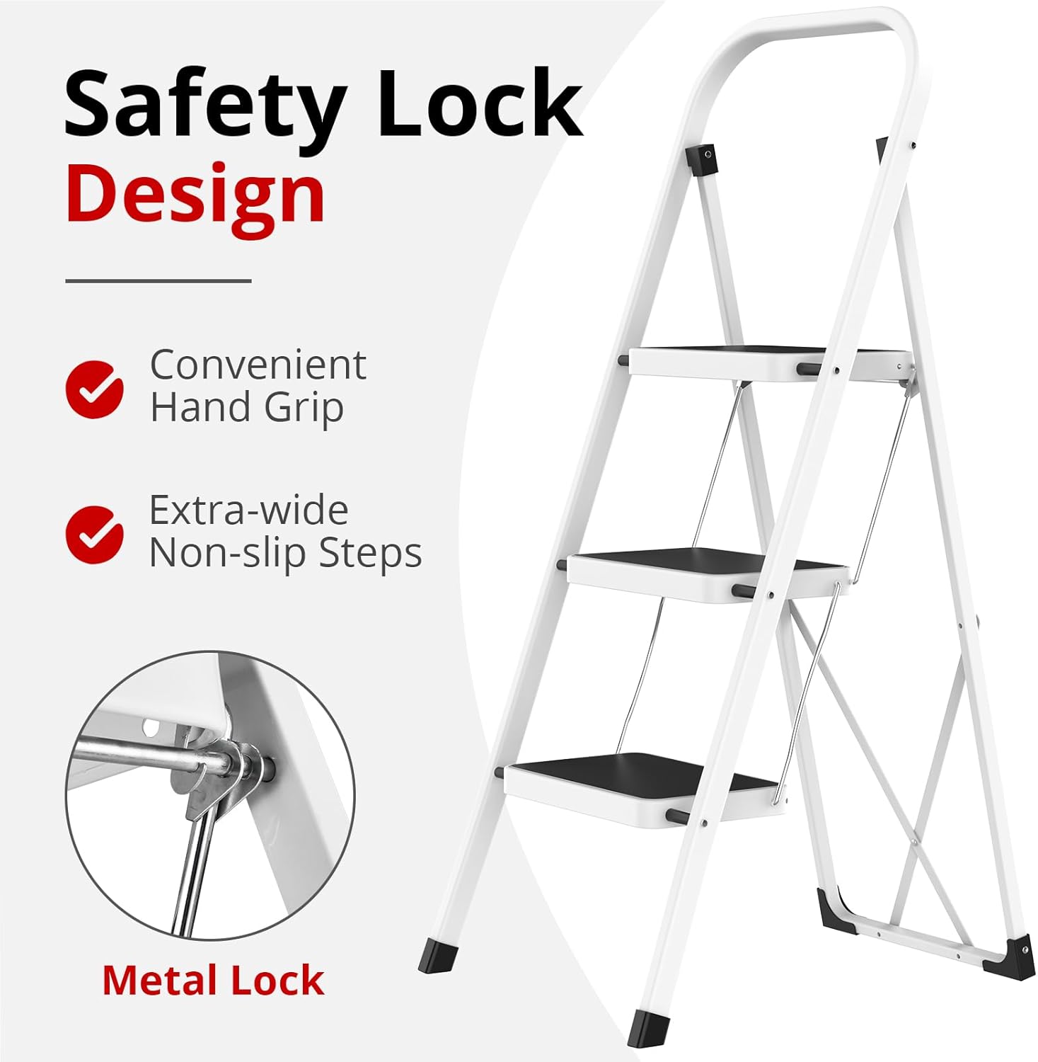 HBTower Step Ladder Folding Step Stool for Adults with Anti-Slip Pedal,330 lbs Capacity for Kitchen, Home,White