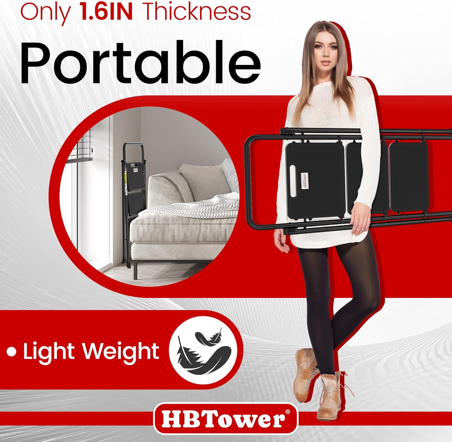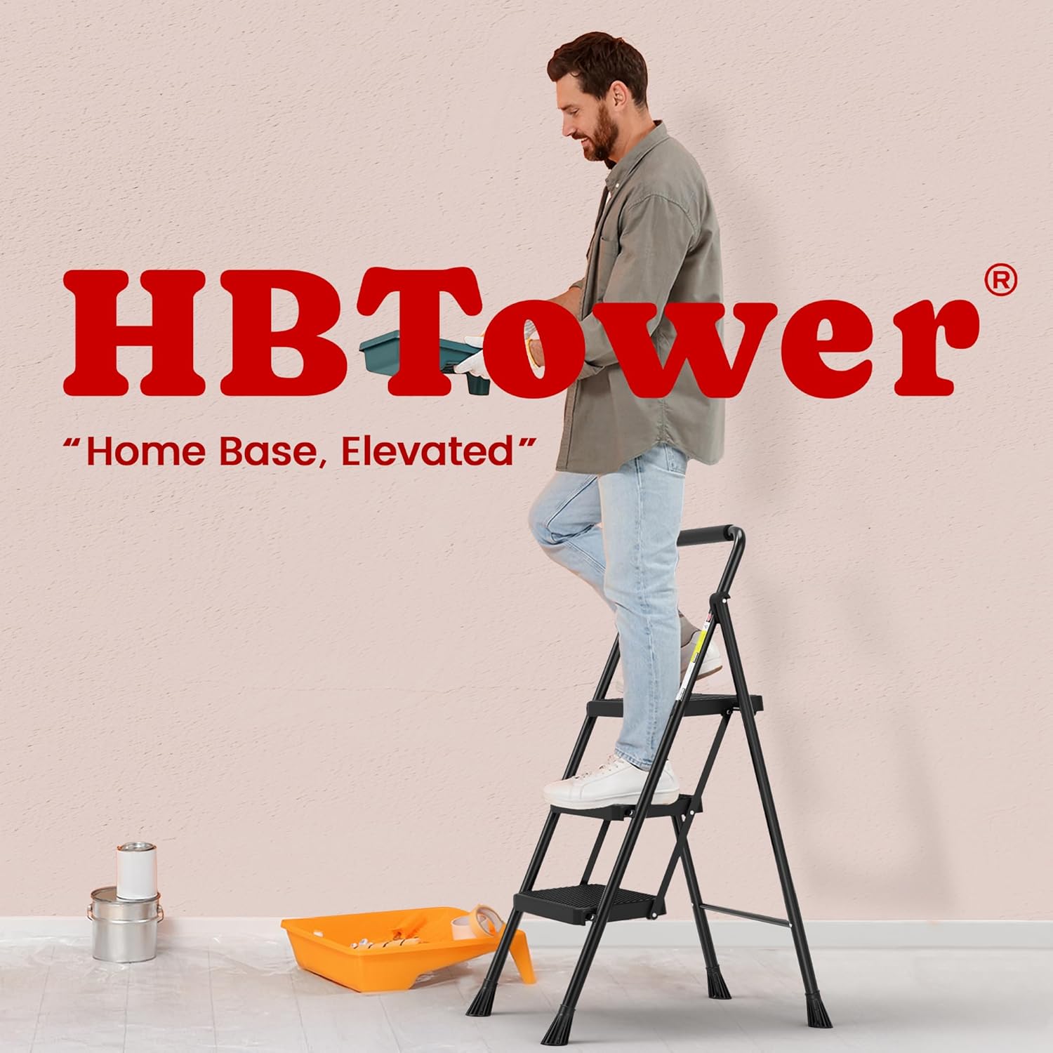 HBTower Step Ladder, Folding Step Stool with Wide Anti-Slip Pedal, Sturdy Steel Ladder, Convenient Handrail, Lightweight, Portable Steel Step Stool